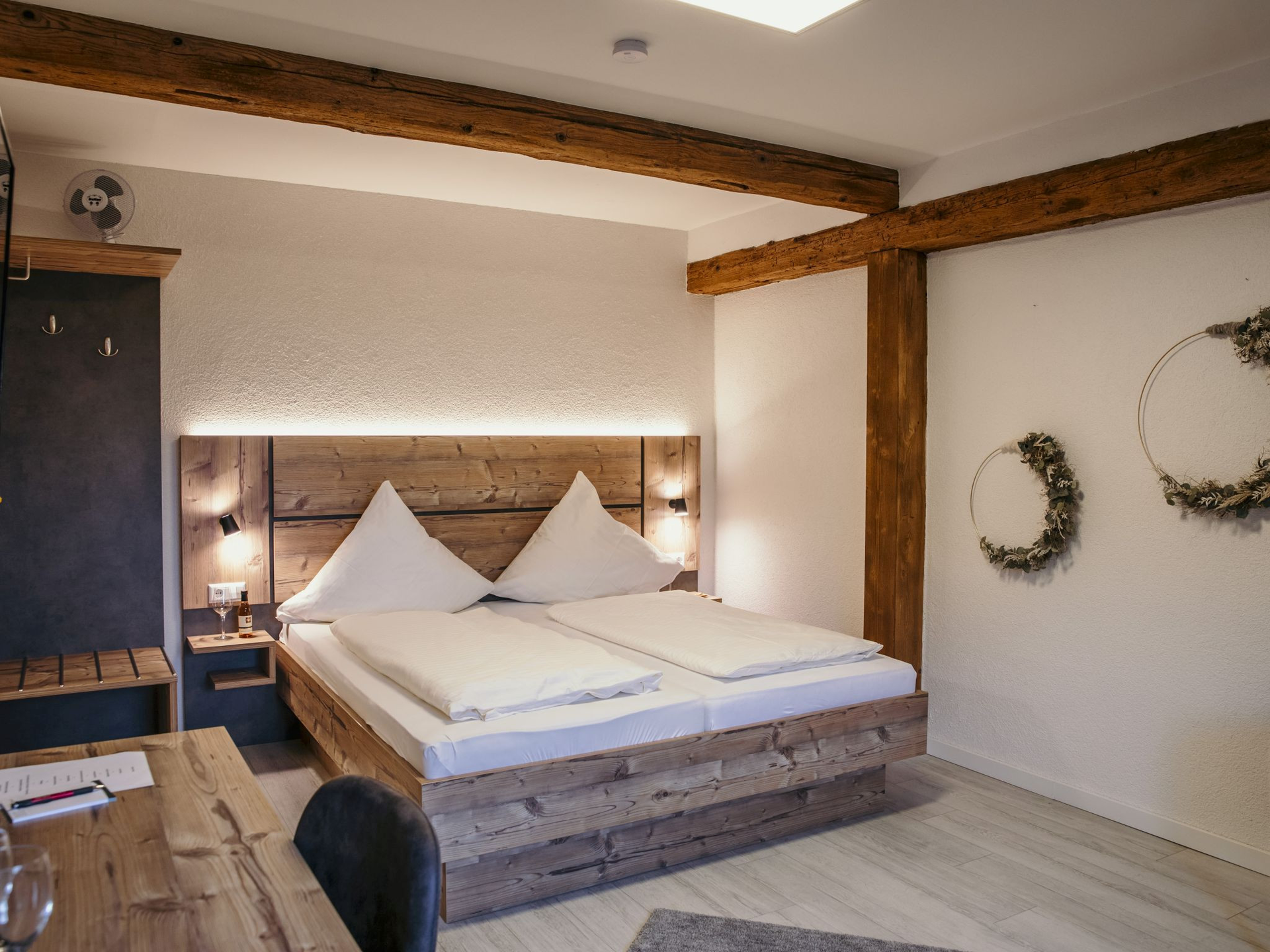 In vier unterschiedlichen Zimmerkategorien erwartet Sie ein einmaliges Wohlfühlerlebnis. Die gemütlich gestalteten Zimmer bestechen durch eine Kombination aus alt und neu. Die natürlichen Materialien und rustikalen Elemente im Fachwerkstil strahlen ein Heimatgefühl der besonderen Art aus und laden zum Verweilen ein.