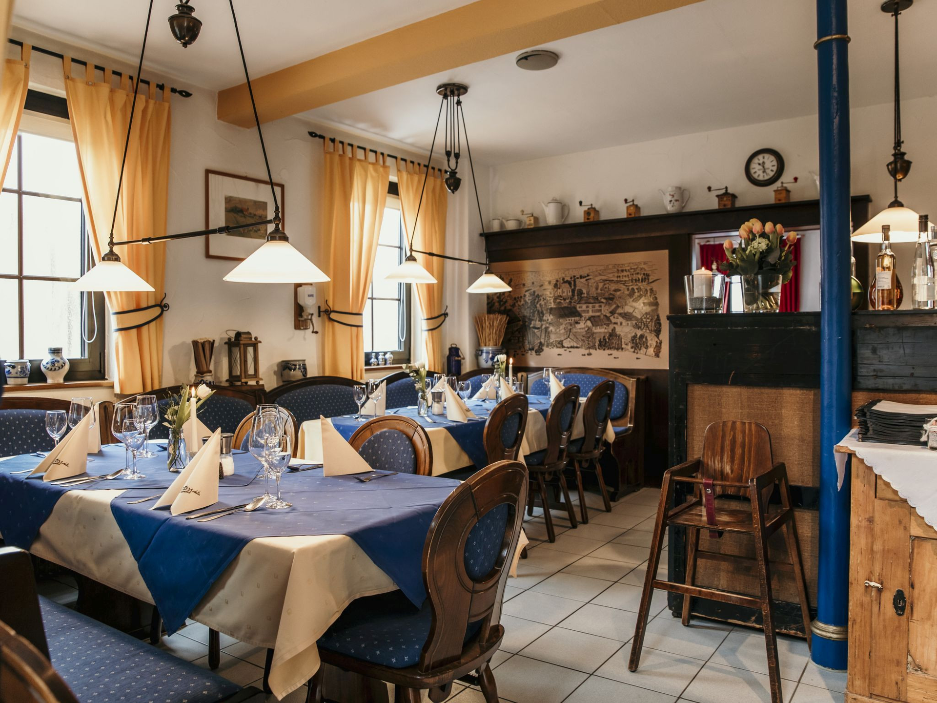 Das hauseigene Restaurant erstreckt sich über vier verschiedene Räumlichkeiten. Jeder Bereich hat seinen eigenen Charme - vom gemütlichen Nebenzimmer bis zum lichtdurchfluteten Wintergarten findet hier jeder einen passenden Platz. Hier können Sie für die Region typische schwäbische Spezialitäten genießen.