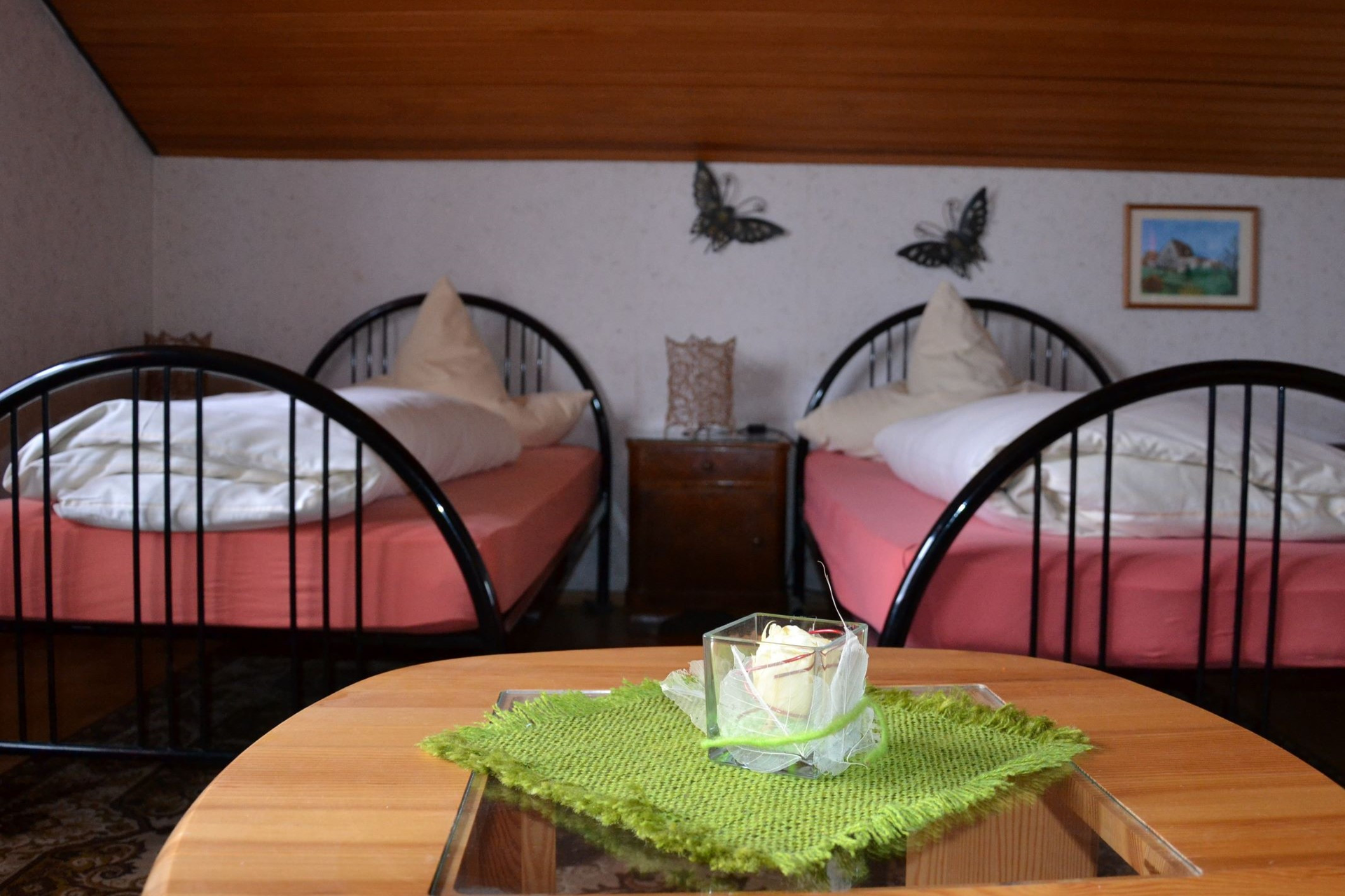 Zu unserer Ausstattung gehört ein TV, ein Zustellbett, eine Terrasse, ein Balkon und ein Garten. Unser Haus ist ein Nichtraucherhaus. Gerne können Sie auch auf Anfrage ein Haustier mitbringen. Monteure sind bei uns ebenfalls willkommen, alle Angaben nach Absprache.