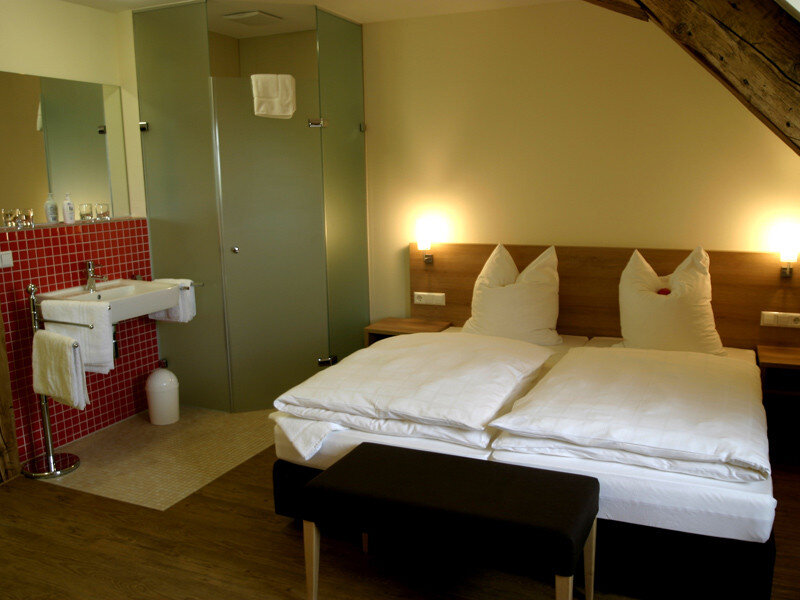 Die gemütlichen Gästezimmer bieten die typische, hochwertige „Rössle-Kombination“ aus Tradition und Moderne. Die Zimmer im Dachgeschoss sind sogar mit alten bäuerlichen Dachstreben verziert und geben mit den original Ziegelsteinwänden einen heimeligen Flair. Die frische Luft und der Ausblick ins Hohenloher Land sind eine wohltuende Abwechslung zum stressigen Großstadtalltag. Alle Zimmer im Hotel haben kostenfreies WLAN, einen Flatscreen-TV und kostenfreies Trinkwasser. Ein frei zugänglicher Kühlschrank im Erdgeschoss steht allen Gästen zur Verfügung – damit du dich auch außerhalb der Restaurant-Öffnungszeiten mit einem erfrischenden Getränk stärken und im Garten die herrliche Aussicht genießen kannst. Die Komfort-Zimmer sind noch großzügiger als die Standard-Zimmer, die Fachwerk-Balken sind zum Teil frei gelegt und das Badezimmer integriert ins Zimmer. Außerdem bietet das Landhaus auch ein barrierefreies Zimmer an.Ausgezeichnet genießen: Kreative Küche mit schwäbischen Wurzeln