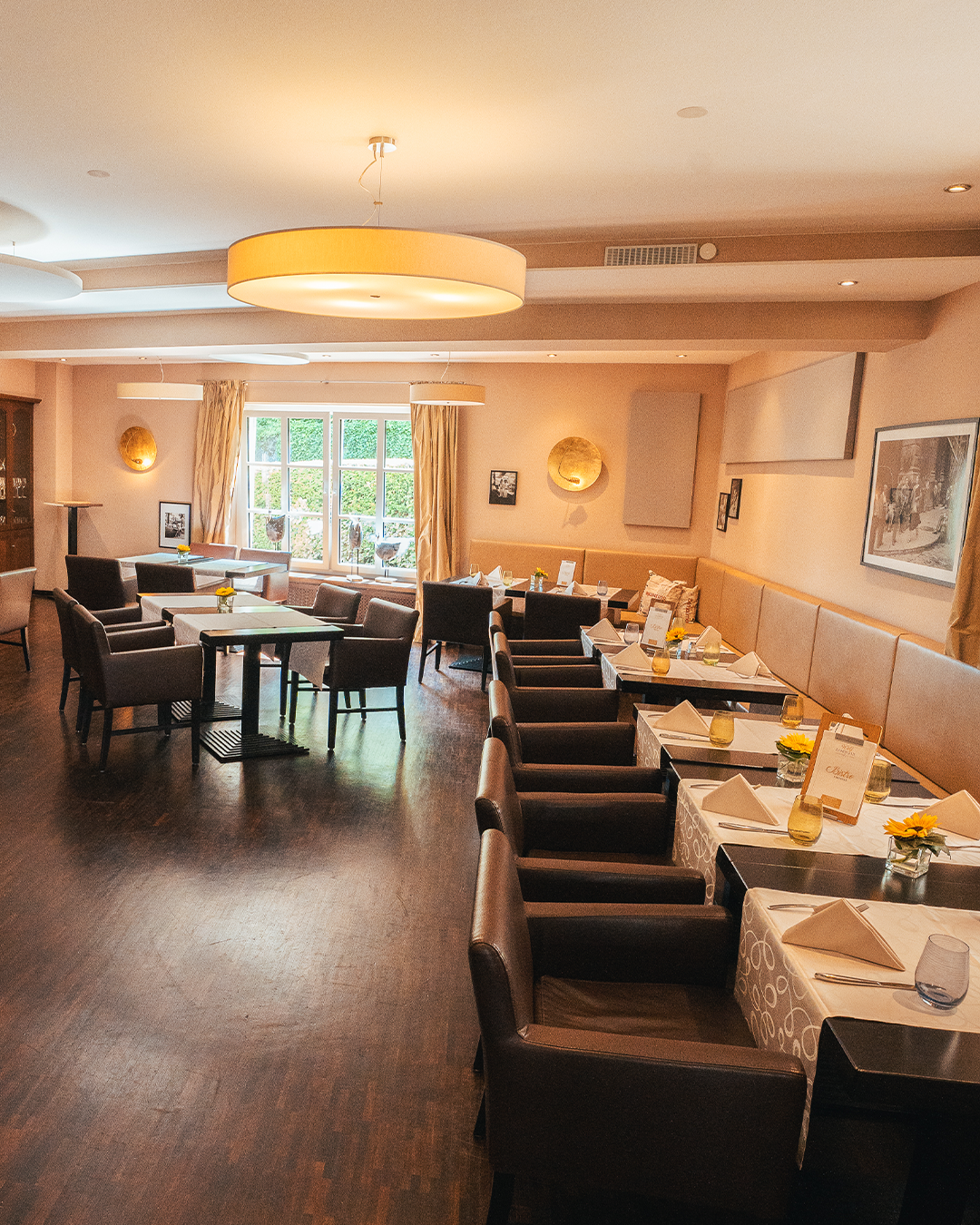 Auf der Sonnenterrasse oder im stilvollen Bistro gibt es regionale, gut bürgerliche und internationale Küche, frisch und mit Liebe zubereitet. Verarbeitet werden vorwiegend regionale Produkte, passend zur Saison. Ob Fleisch, Fisch oder vegetarisch – hier findet jeder das passende Gericht.