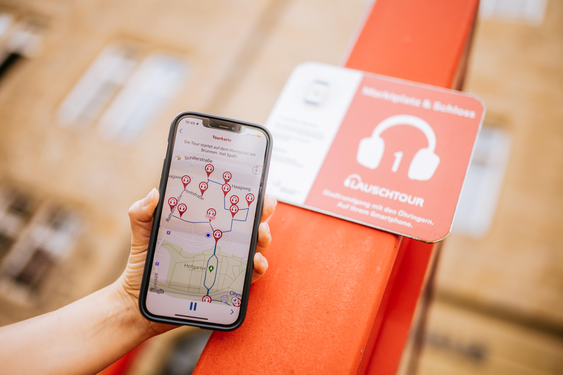 Laden Sie einfach die kostenlose Lauschtour-App herunter (app.lauschtour.de - Umfang 25 MB inkl. der Audios) und lauschen Sie an 12 Stationen in der historischen Innenstadt sowie im Hofgarten spannenden Geschichten. Auf diese Weise begleiten Sie auf der 1,6 km langen Rundtour besondere Öhringer Bürgerinnen und Bürger.