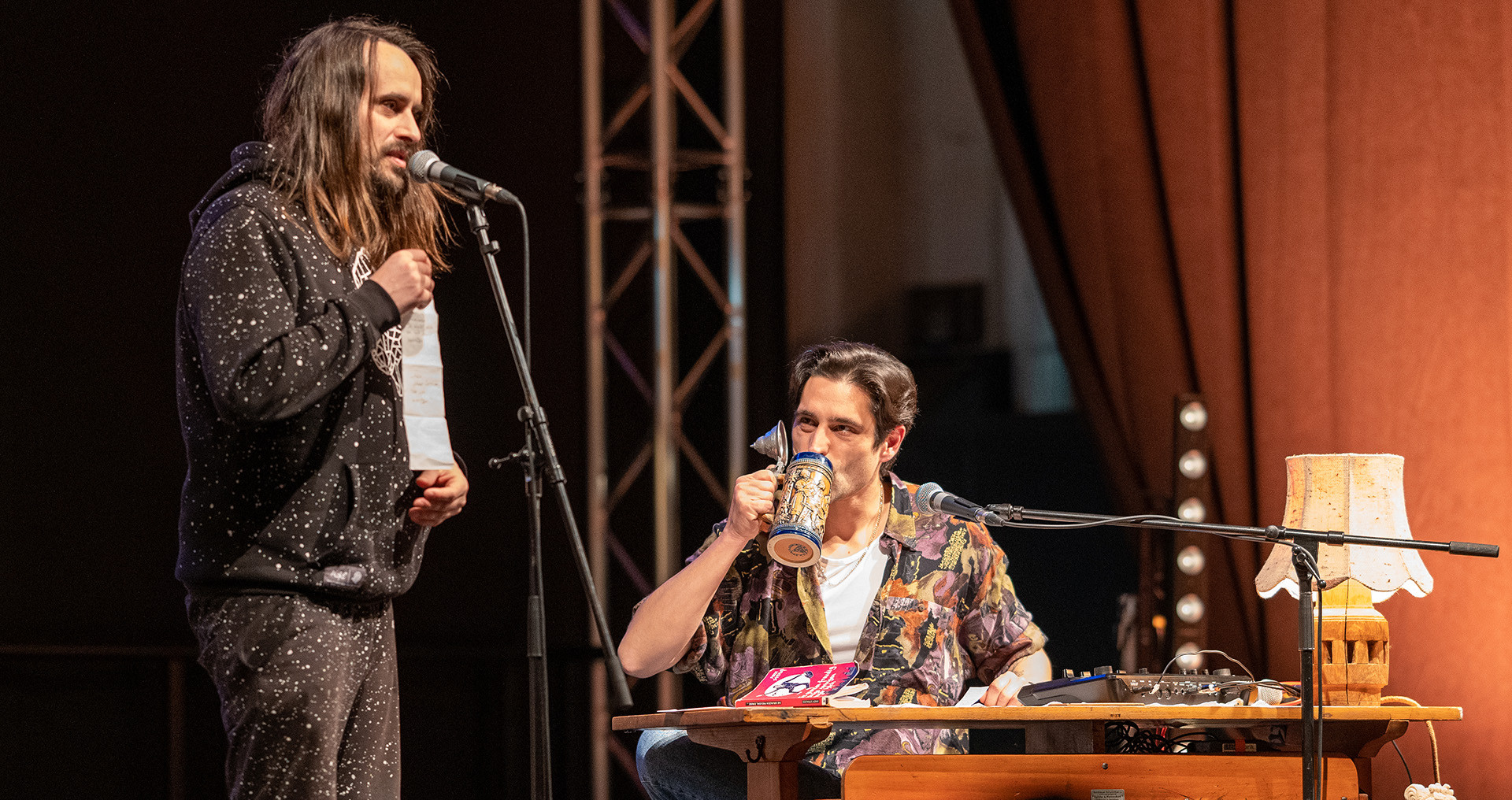 Das Publikum entscheidet nach jeder Runde, was besser war: der Text oder der Vortrag. Gewinnt der Text, bekommt die Person, die ihn mitgebracht hat ein Bier (gern auch alkoholfrei). Gewinnt der Vortrag, trinkt die Person auf der Bühne. Was könnte da schon schief gehen?
