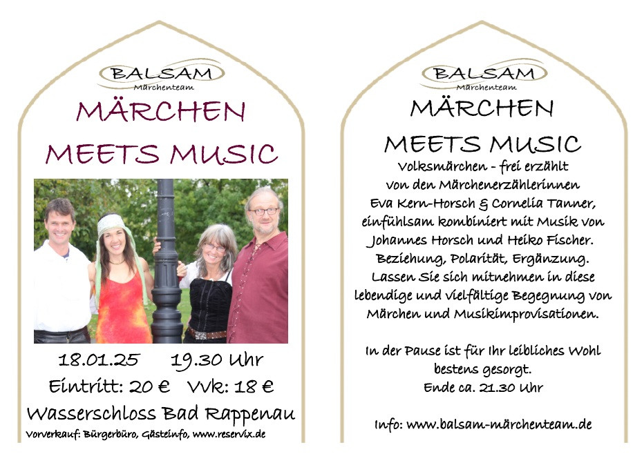 Buchen Sie die Märchenerzählerinnen Eva Kern-Horsch und Cornelia Tanner mit den Musikern Johannes Horsch und Heiko Fischer.