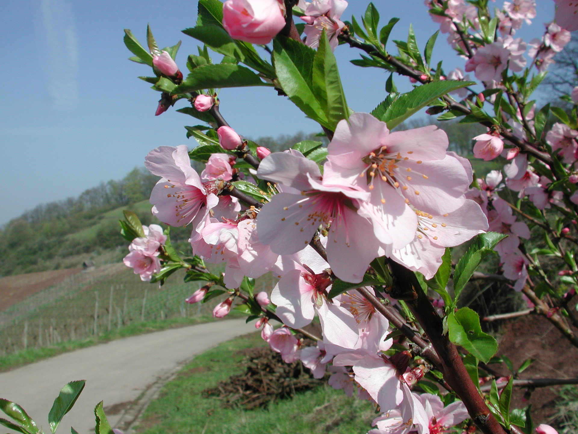 Atmosphäre der Mandelblüte inmitten der idyllischen Landschaft in den Weinbergen Diefenbach und