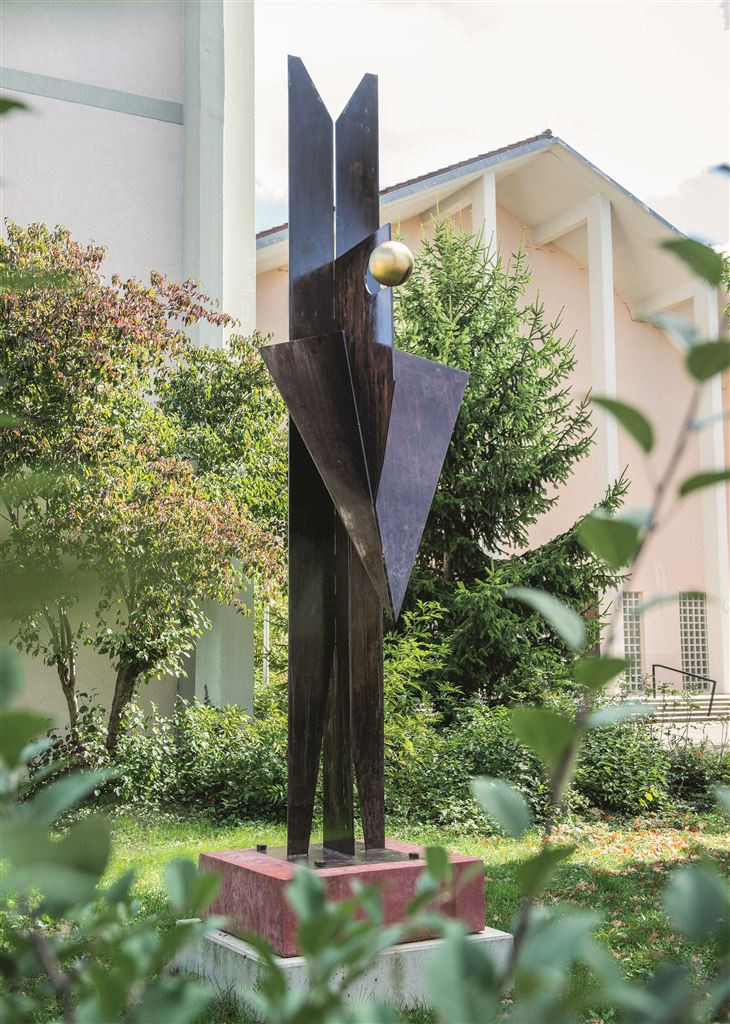 Mit einer unbetitelten Figur eines Engels ist ein Objekt des in der Region Rhein-Neckar bekannten und in Neckargemünd ansässigen Bildhauers Michael Lîngren in Schwetzingen, im Außenbereich der katholischen Kirche St. Maria, vertreten. Die geometrischen Grundformen Dreieck und Kugel addieren sich zusammen mit gebogenen Blechen zur monumentalen und stilisierten Plastik eines Engels. Das archaisch und puristisch wirkende Himmelswesen verfügt über eine hohe Anziehungskraft, die den Betrachter bewusst zur „emotionalen Einkehr“ verleiten soll.