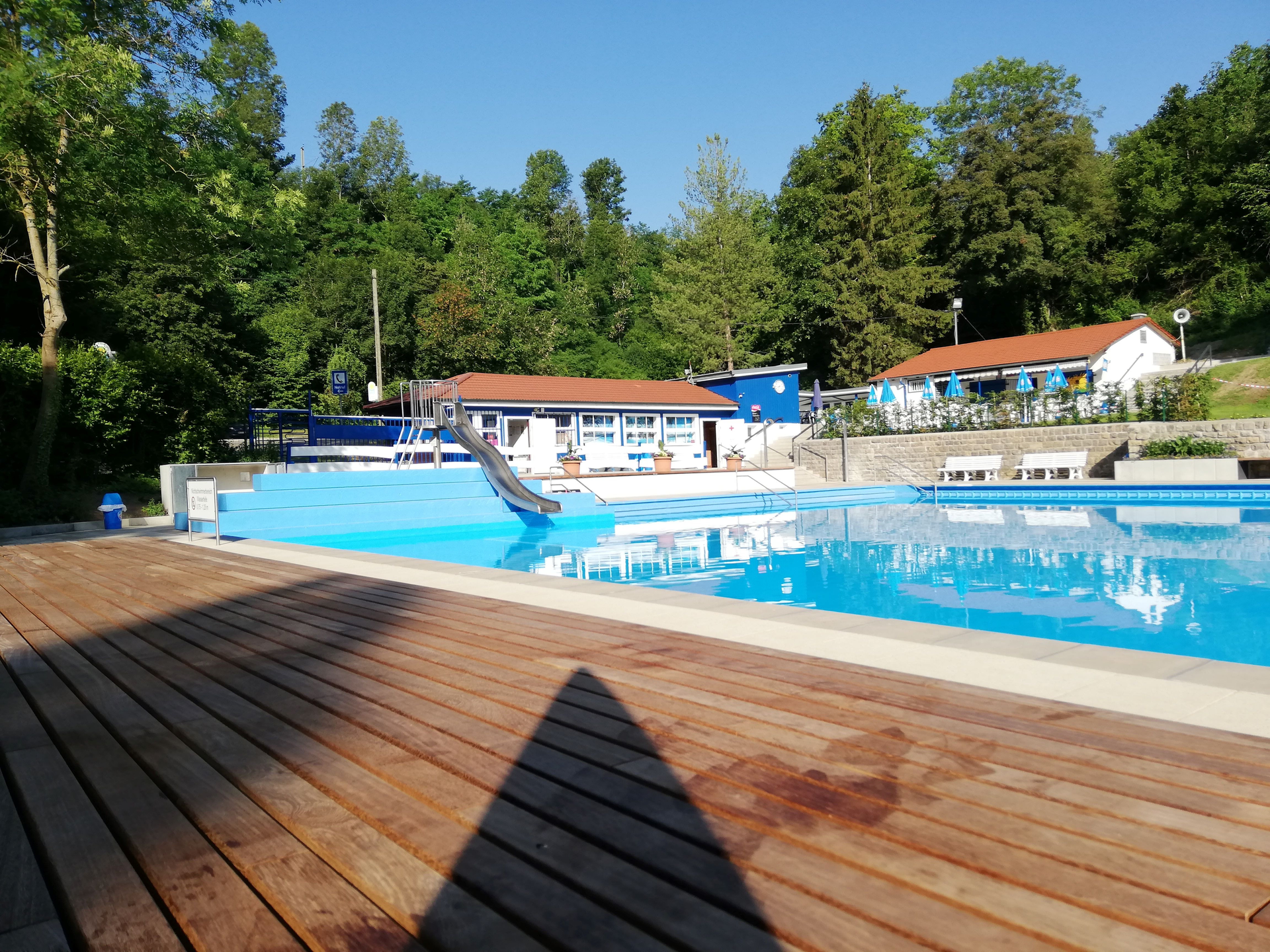 Zusätzlich zu den Schwimmer- und Nichtschwimmerbecken gibt es eine Rutsche, ein Kinderplanschbecken sowie ein Beach-Volleyballfeld. Der Kiosk bietet Erfrischungen und Snacks, und für den nötigen Komfort sorgen Umkleiden und sanitäre Einrichtungen.