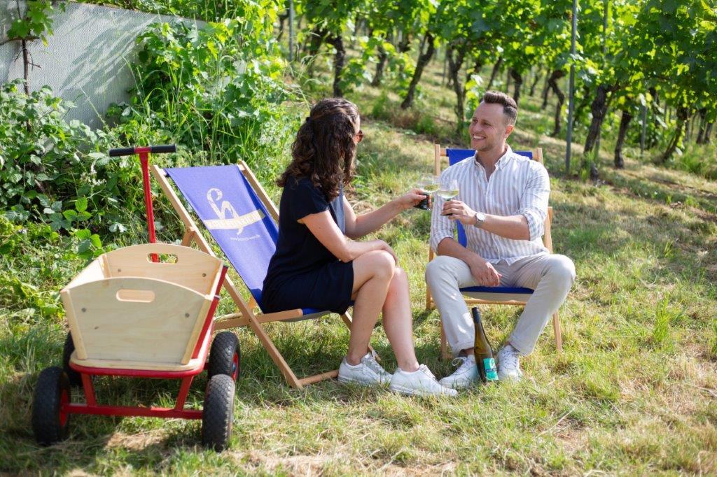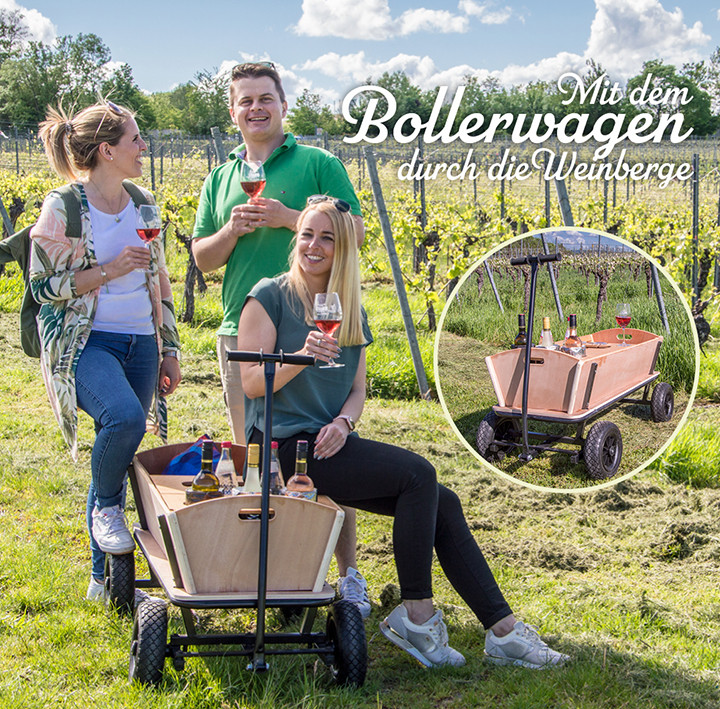 Gönnen Sie sich eine perfekte kleine Auszeit mit einem Bollerwagen, ein paar erfrischenden Getränken und den atemberaubenden Heilbronner Weinbergen.