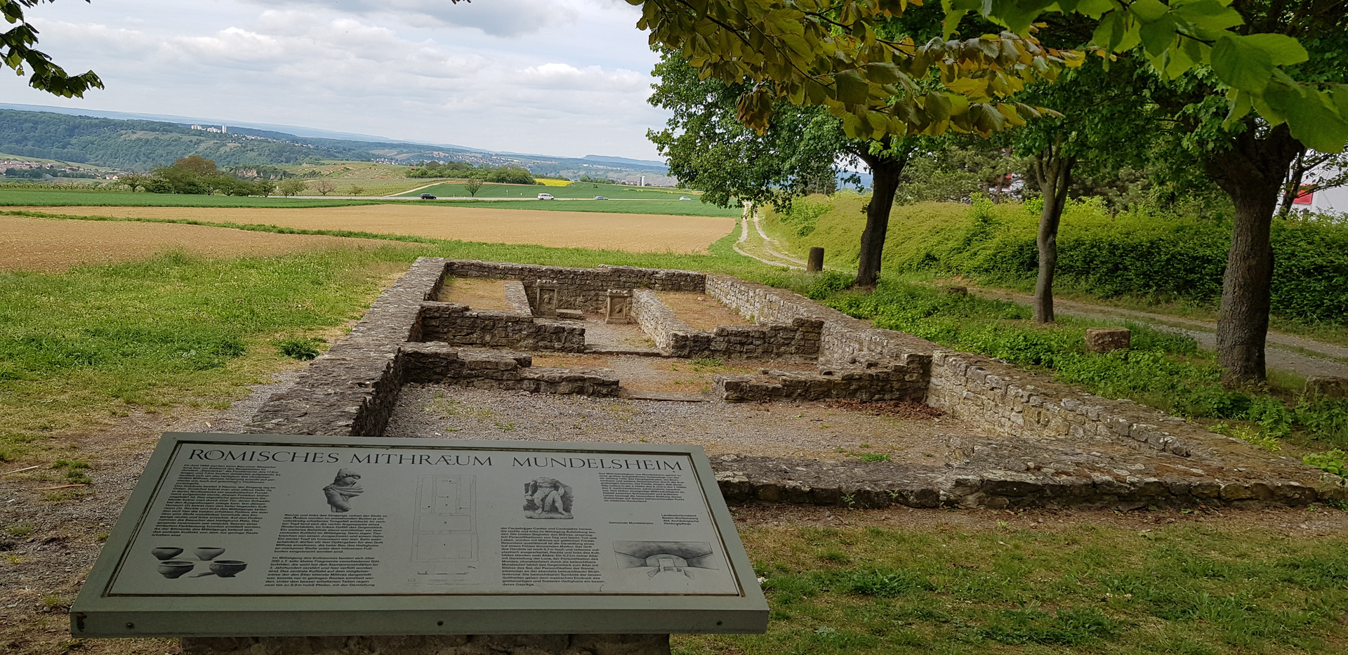 Der Mithras-Kult war bei den Römern sehr beliebt und weit verbreitet. Im Zentrum dieses ausschließlich den Männern vorbehaltenen Kultes stand der Lichtgott Mithras. In der Anlage selbst sind zwei sehr schön gearbeitete Altäre der Mondgöttin Luna und des Sonnengottes Sol als Kopien ausgestellt. Von der Anlage aus hat der Besucher einen fantastischen Rundblick auf das Neckartal und die umliegenden Weinberge.