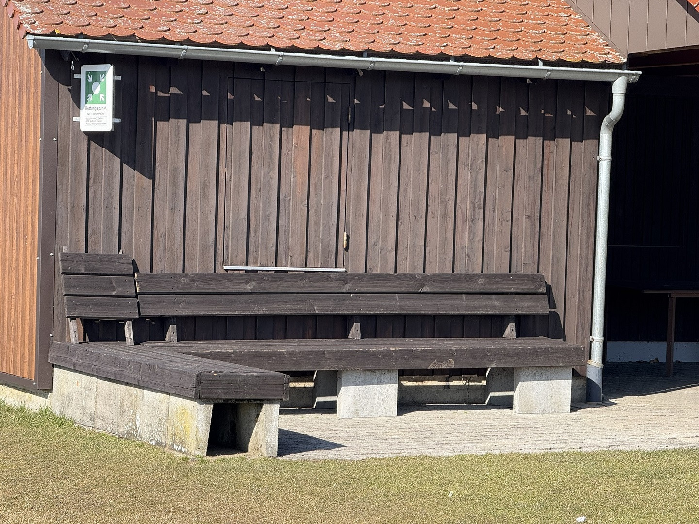 Zwischen Musdorf und Brettheim: Bänke mit Lehne am Forstrettungspunkt SHA-351, direkt am Modellflugplatz des Club Brettheim. Kein Abfallbehältnis vorhanden.