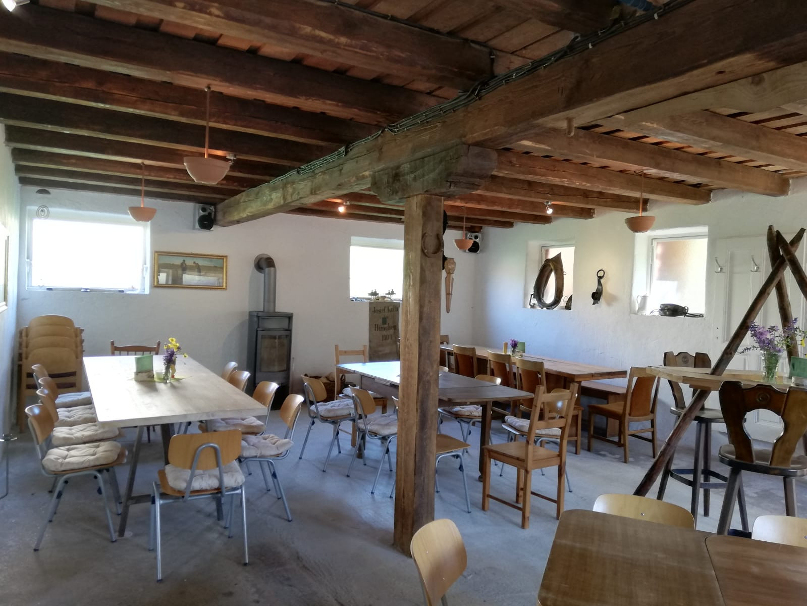 Die besondere Atmosphäre unseres Restaurants entsteht durch den alten Stall, der mit einem gemütlichen Holzofen, indirekter Beleuchtung und urigen, individuellen Möbeln ausgestattet ist. Der Hof selbst wurde bereits 1941 erbaut und strahlt unvergleichlichen Charakter aus.