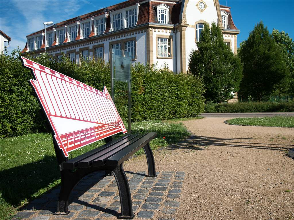 Am 4. August 1870 traf der erste Zug in Schwetzingen ein. Schwetzingen entwickelte sich in den darauffolgenden Jahren zu einem Eisenbahnknotenpunkt. Großunternehmen konnten ihre Produkte in ganz Deutschland und der Welt absetzen. 2020 wurden anlässlich des Jubiläums „150 Jahre Rheinbahn“ Motivbank und Tafel aufgestellt.