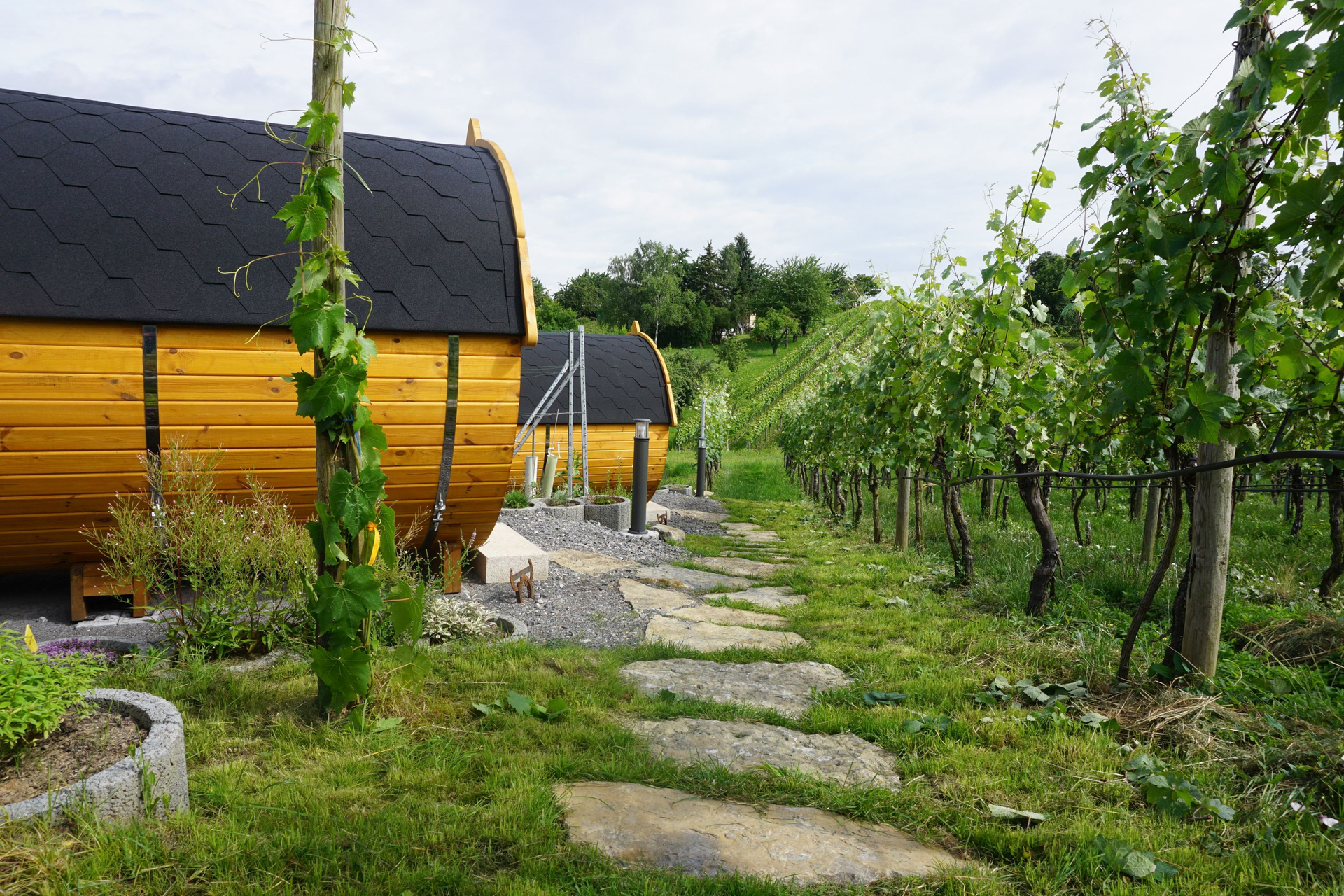 Für naturverbundene Weinliebhaber oder Romantiker stehen hier 3 "Übernachtungsfässer" direkt im Weinberg zur Verfügung. Gemütliche 2x2m Betten und eine kleine "Terrasse" zwischen den Reben - gepaart mit einem zarten Holzduft und einem komfortablen Sanitärbereich im Weingut - machen den Aufenthalt zum Glamping.