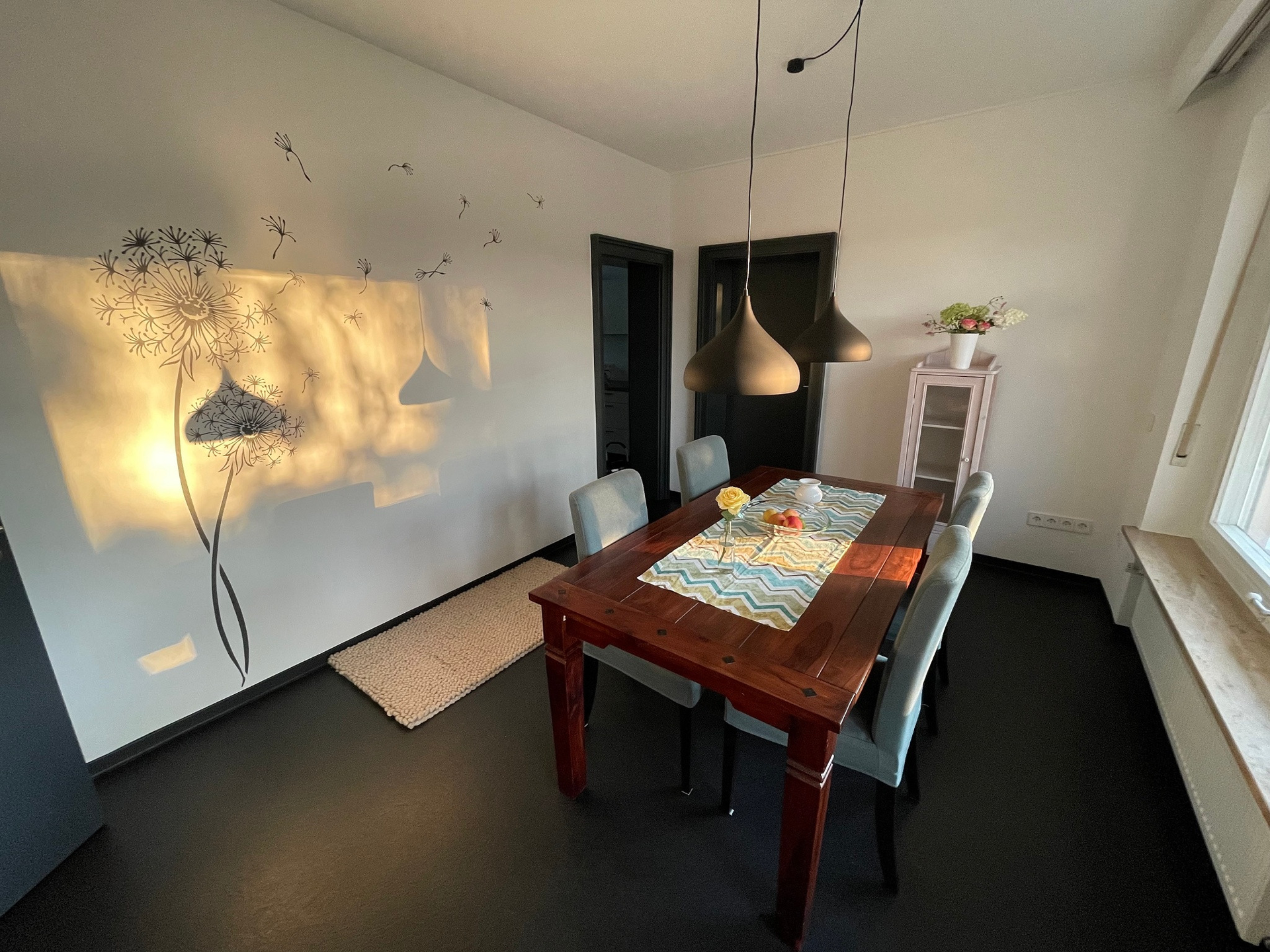 - Esszimmer mit einem direkten Zugang zur sonnigen Terrasse mit Blick auf Bad Mergentheim