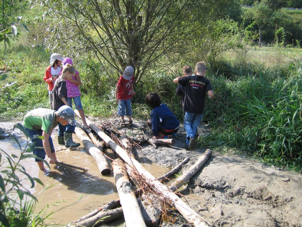 Der Naturerlebnisraum am Hungerbach zwischen Vaihingen und Kleinglattbach ist ein Spielplatz der besonderen Art, der den Kindern ohne gewöhnliche Spielgeräte ein eigenbestimmtes Spielen in der Natur ermöglicht. Hier können die Kinder auf einer Fläche von zwei Fußballplätzen und fern ab von gefährlichen Straßen mit allen Sinnen die Natur entdecken, buddeln, matschen und spielen. Der integrierte Hungerbach wurde so umgebaut, dass ein gefahrloses Spielen möglich ist, dennoch sollten Kinder unter 6 Jahren nur unter Beaufsichtigung der Eltern auf das Gelände. Parkmöglichkeit: Am Besten parkt man am Schlehenweg in Kleinglattbach und läuft dann geradeaus den Feldweg herunter.