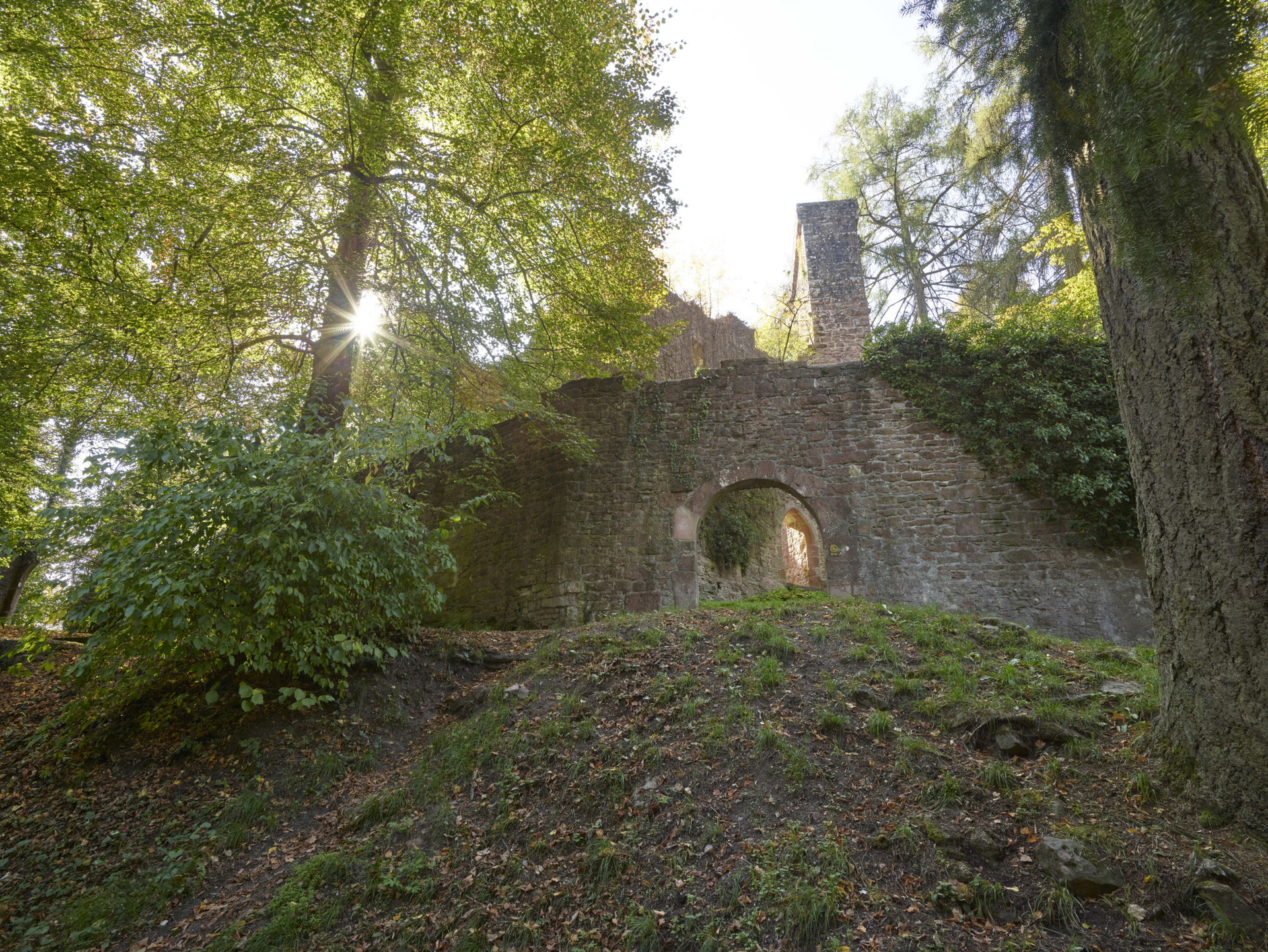 Bei der Schleuse Rockenau wechselt der Neckarsteig die Flussseite. Die Burgruine Stolzeneckwurde etwa um 1200 erbaut und war ab 1284 als kurpfälzisches Lehen an Dienstleute der Pfalzgrafen vergeben. Nach 1610 wurden die Burg und der zugehörige Burgweiler Krösselbach aufgegeben.