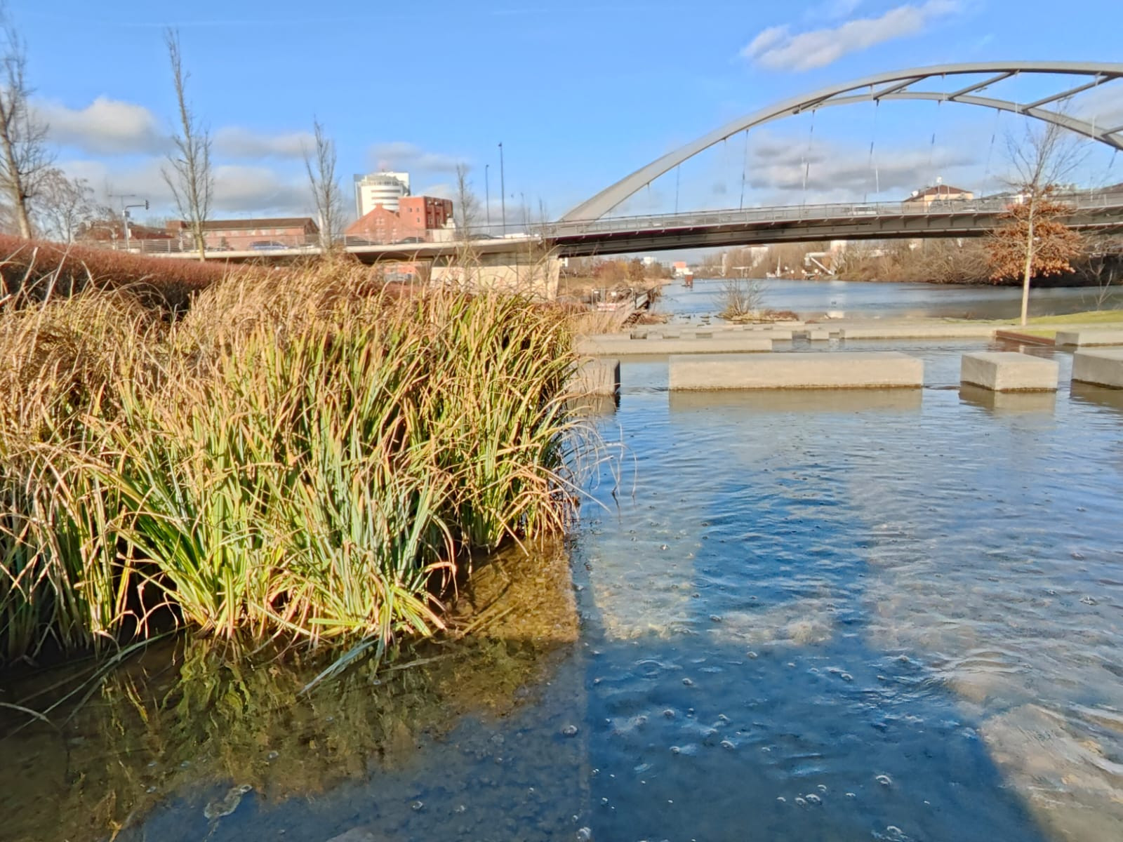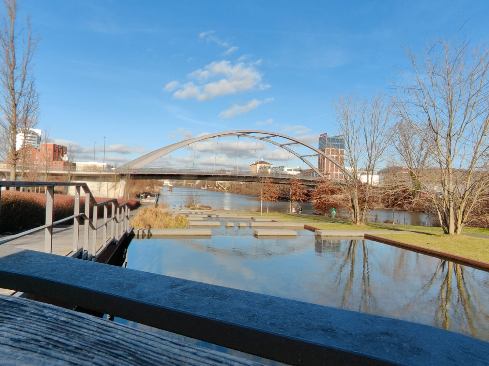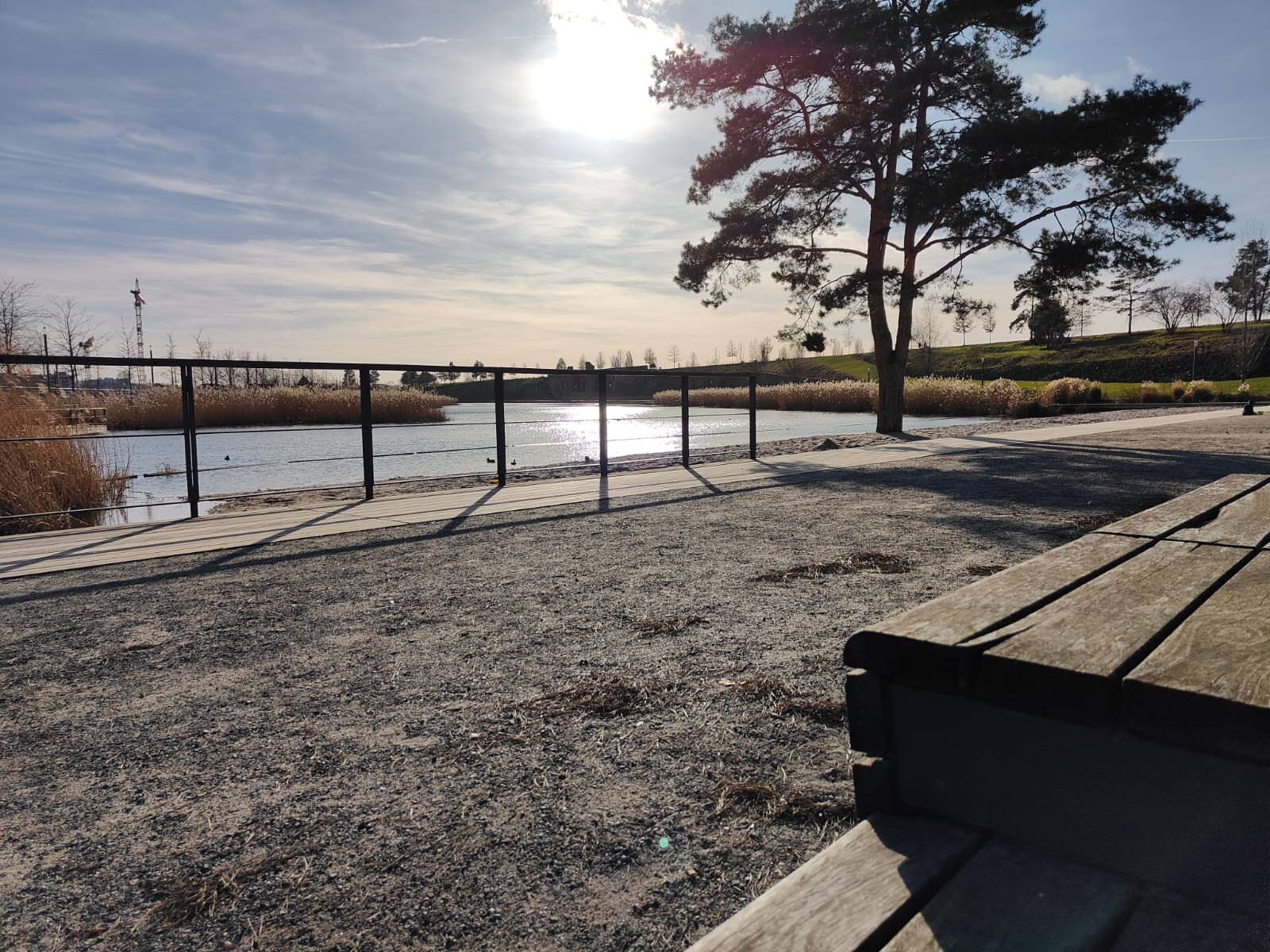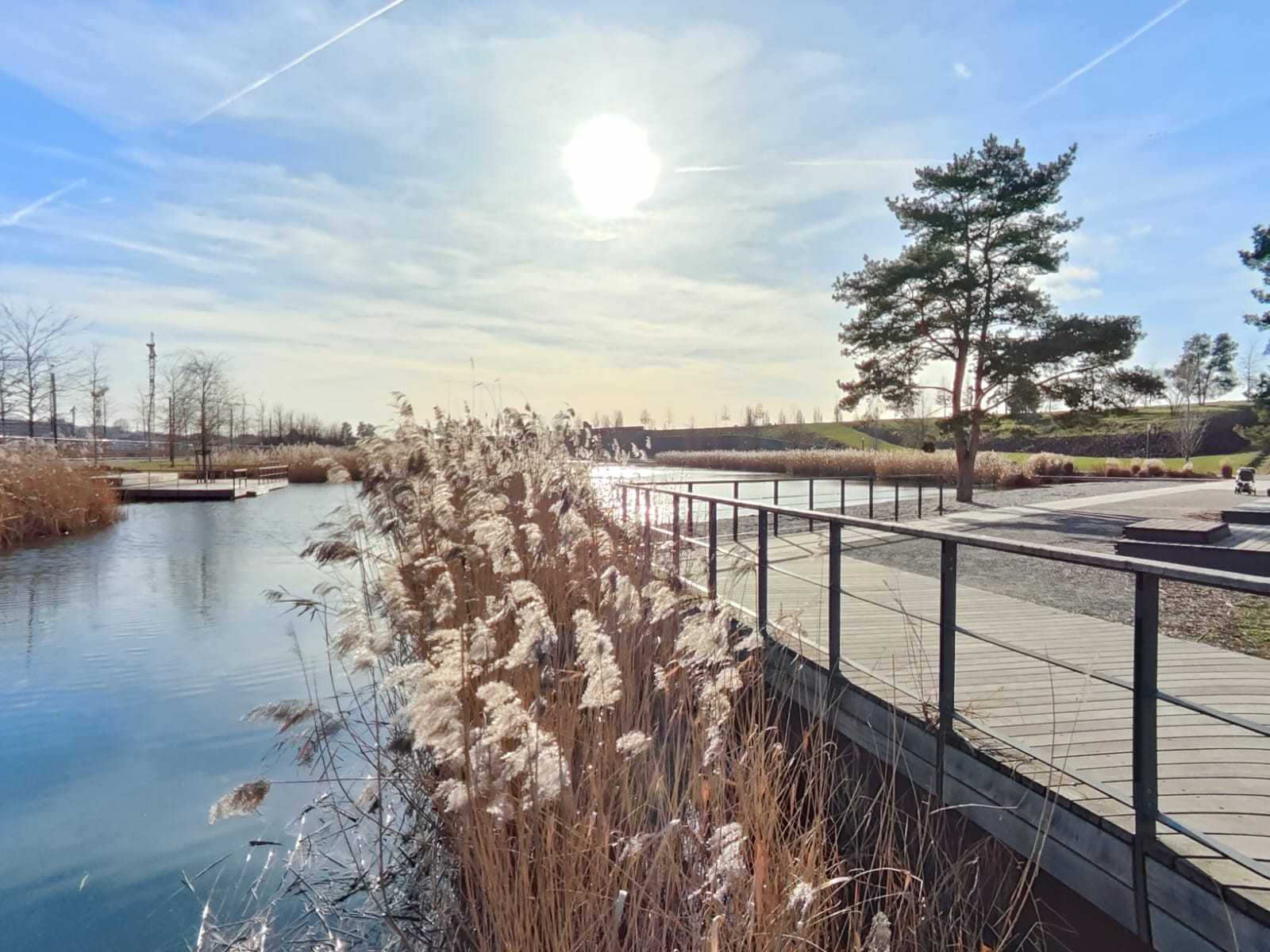 Parkanlage mit zwei angelegten See, Wassertreppen und vielfältigen Aufenthaltsräumen. Diverse Gastronomieangebote und Spielplätze.