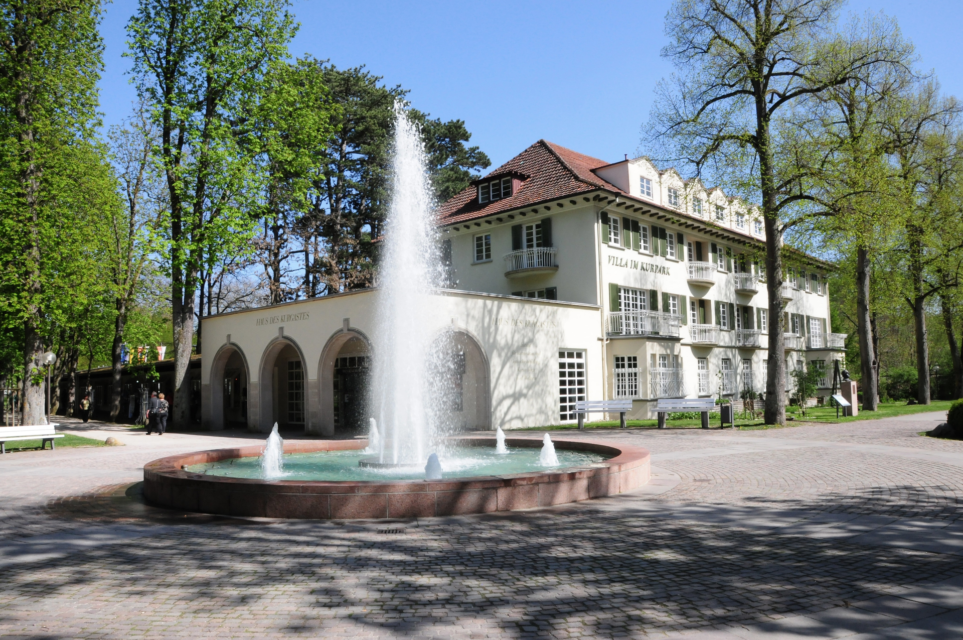 Am Ententeich und Mandelbäumen entlang und am Schellenhäuschen vorbei betritt man den äußeren Kurpark.