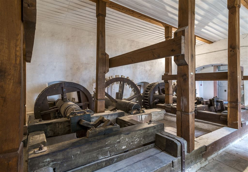 Das Obere Wasserwerk (heute Finanzamt) wurde um 1774 zum Betrieb der Wasserspiele des östlichen Schlossgartens errichtet. Es wurde mit zwei Wasserbehältern im Obergeschoss und zwei unterschlächtigen Wasserrädern ausgestattet, die von einer bis weit ins 19. Jahrhundert als technische Meisterleistung geltende Hydraulik angetrieben wurden.