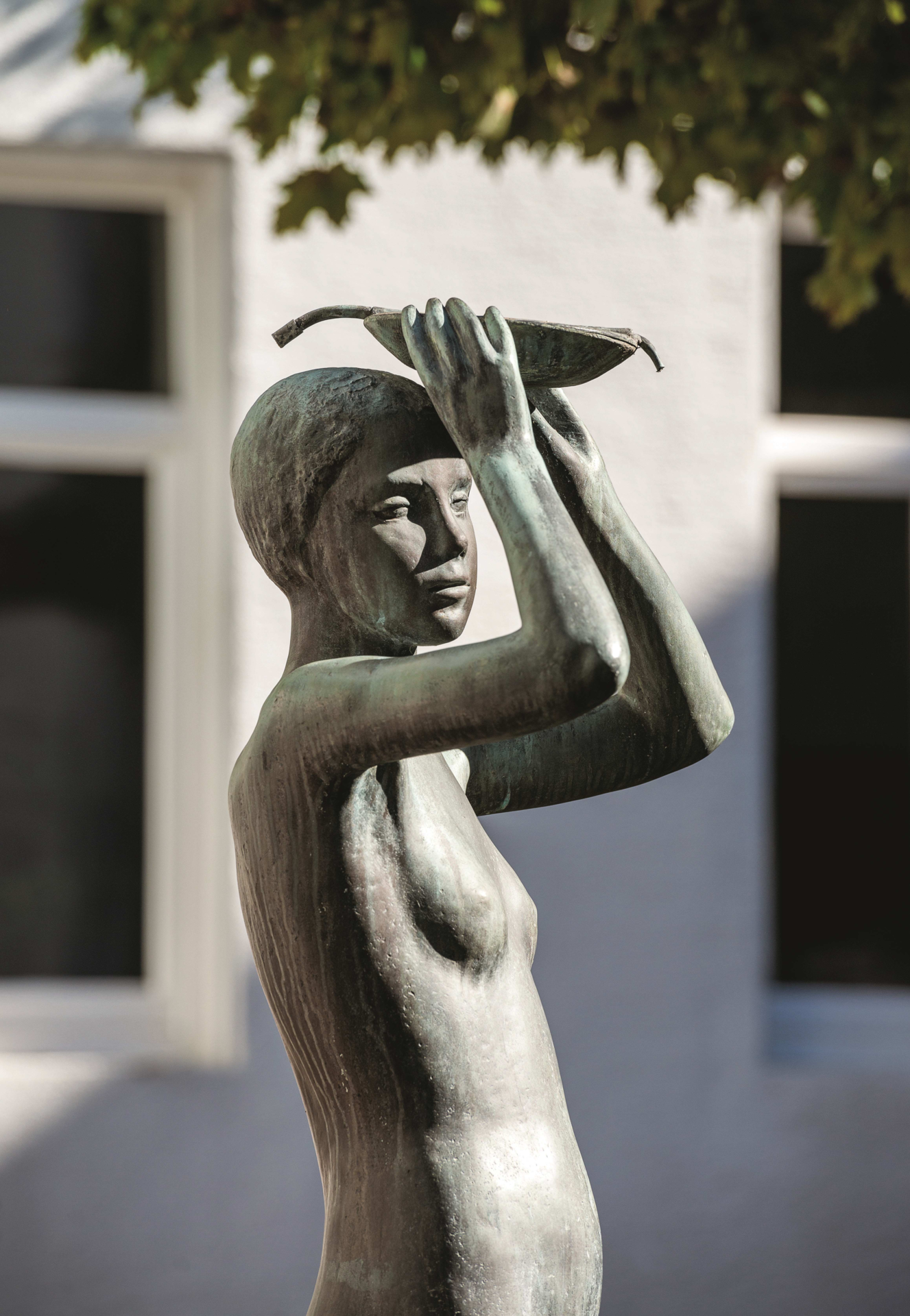 Die schlanke Mädchengestalt (im Volksmund „Ursula“) wurde 1935 als Brunnennymphe von Otto Schließler geschaffen, der dem Gestaltungskanon des Nationalsozialismus folgte. Sie war Teil einer konzeptionellen Anlage bei den „Drei Brücken“ in der Schwetzinger Oststadt, die eine architektonische Bekundung der „neuen Zeit“ und als Kulisse für Reden und Ehrungen ausgerichtet war. Über ihrem Kopf hält die Nymphe eine Schale, von der aus ein transparenter Vorhang aus Wasser als „Bekleidung“ herabfloss. Heute steht die Figur im Innenhof des Rathauses.