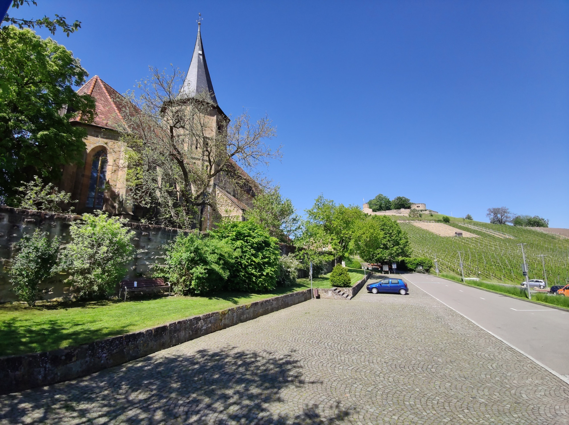 PKW- und Busparkplätze direkt am historischen Ortskern zwischen Kernerhaus und Burgruine Weibertreu.