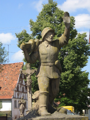 Beide Strecken gehen dann weiter bis zum Waldrand. Hier geht es dann links den Waldweg hoch bis zur Menzinger Straße. Der Straße links ca. 100 m folgen und dann rechts in den Waldrand einbiegen. Am Ende des Waldes biegen wir nach ca. 100 m rechts ins Tal ab und erreichen nach ca. 1 km die Marlengrotte und die Landstraße. Hier links in den Ort abbiegen weiter zum Ausgangspunkt.