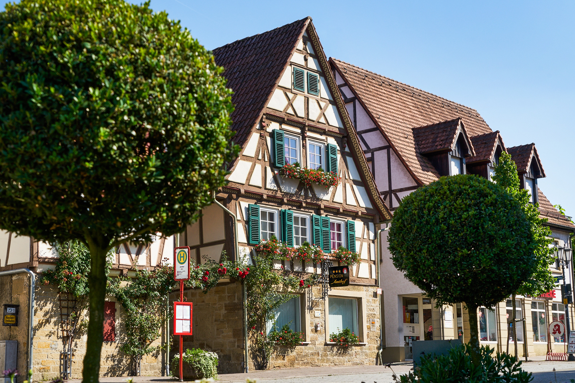 Übernachten Sie in der gemütlichen Ferienwohnung für bis zu vier Personen. Genießen Sie Ihren Aufenthalt im schönen Weinort Oberderdingen – die Pension liegt gleich gegenüber dem Amthof.