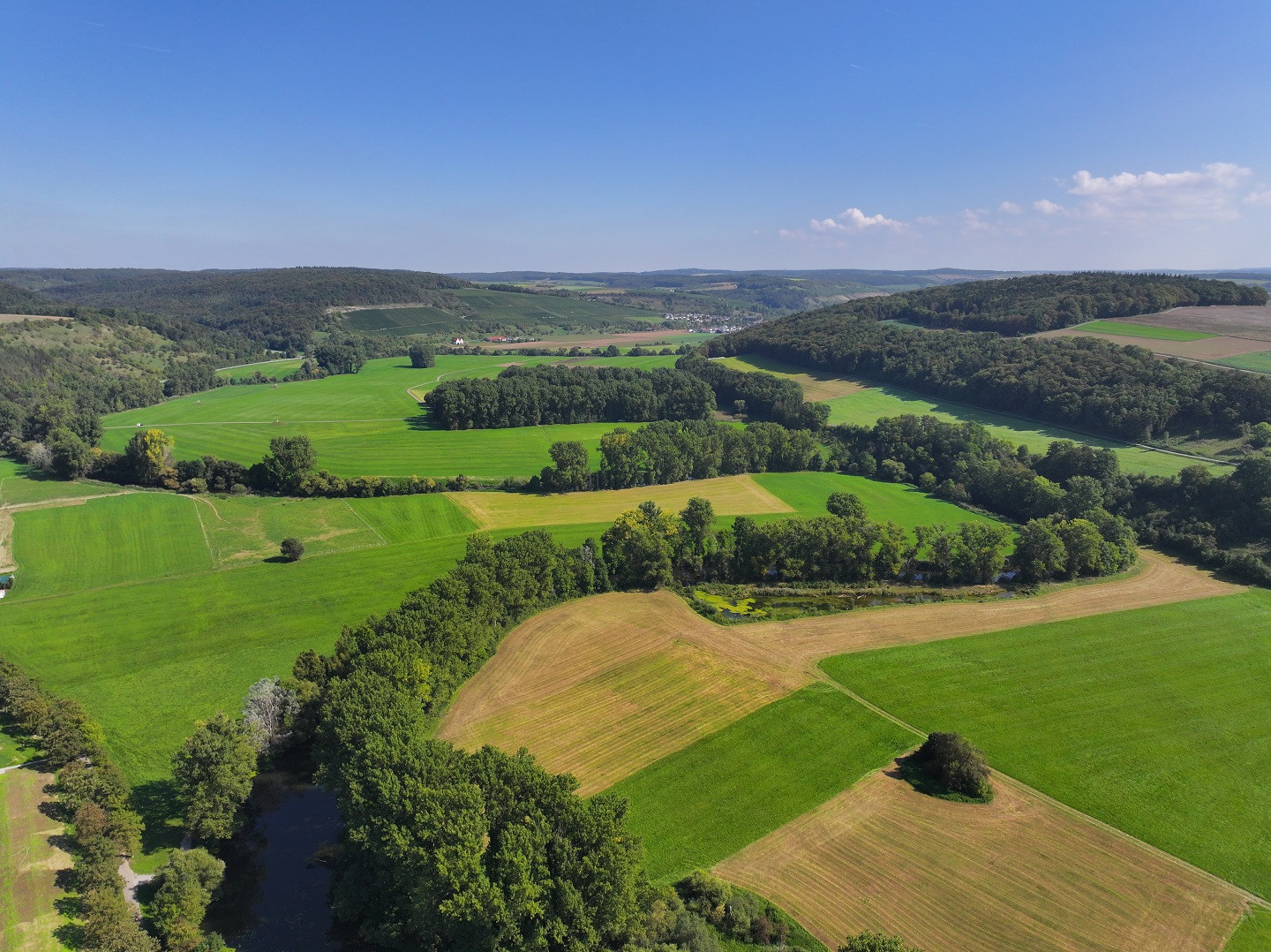 In Neunstetten erreichst du das Naturschutzgebiet „See“. Halte Ausschau nach Wasservögeln und seltenen Pflanzen. Von dort wanderst du weiter am Berlichingschen Schloss vorbei und durch ein kurzes Waldstück, bis sich der Weg mit der Route von Gommersdorf vereinigt.