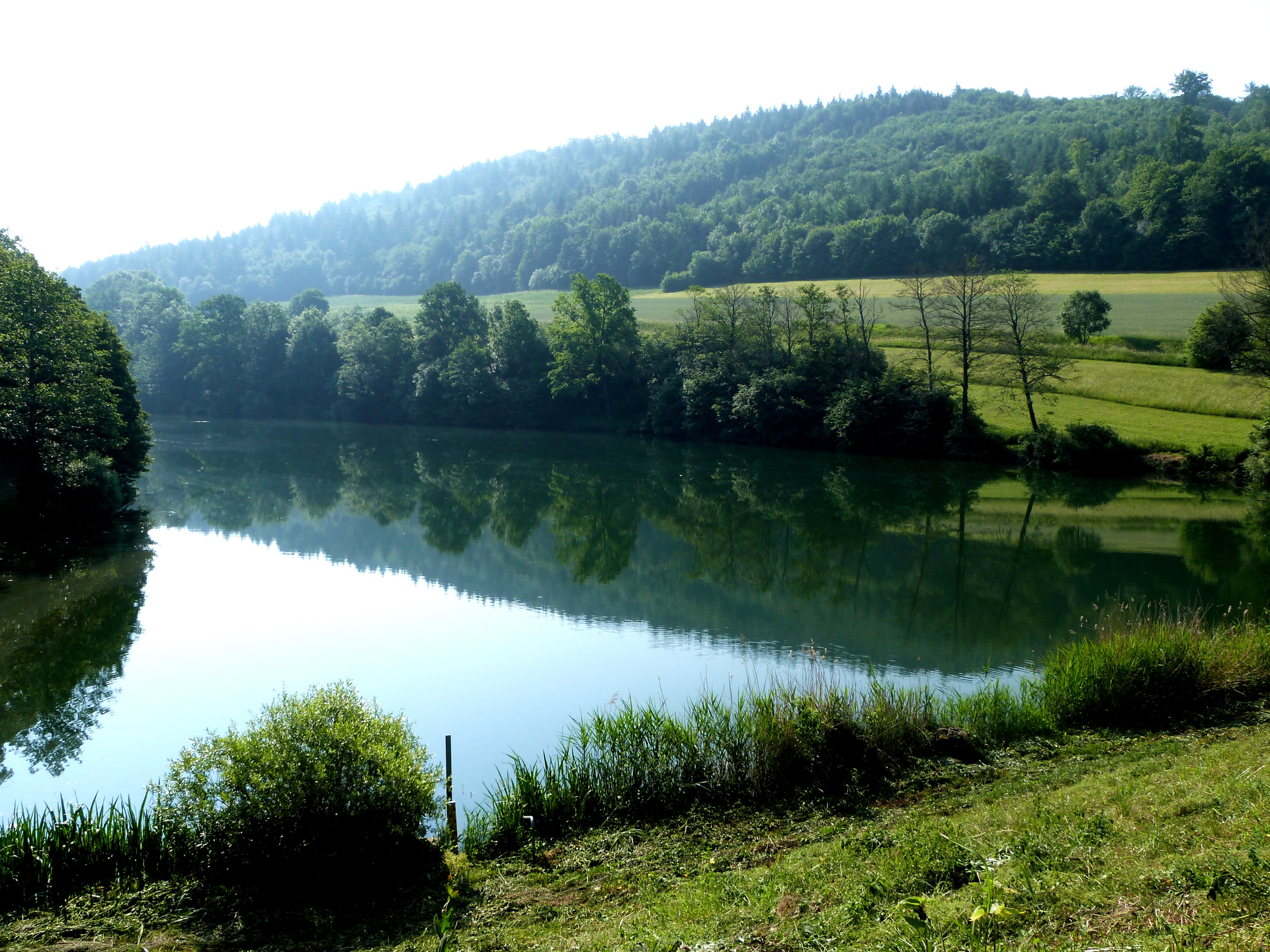 Starte an der Stauseehalle in Mulfingen und folge dem Uferweg in Richtung Damm. Kurz bevor du diesen erreichst, biegst du halb links in den Waldweg ab, der dich in sanftem Anstieg nach Ochsental führt.