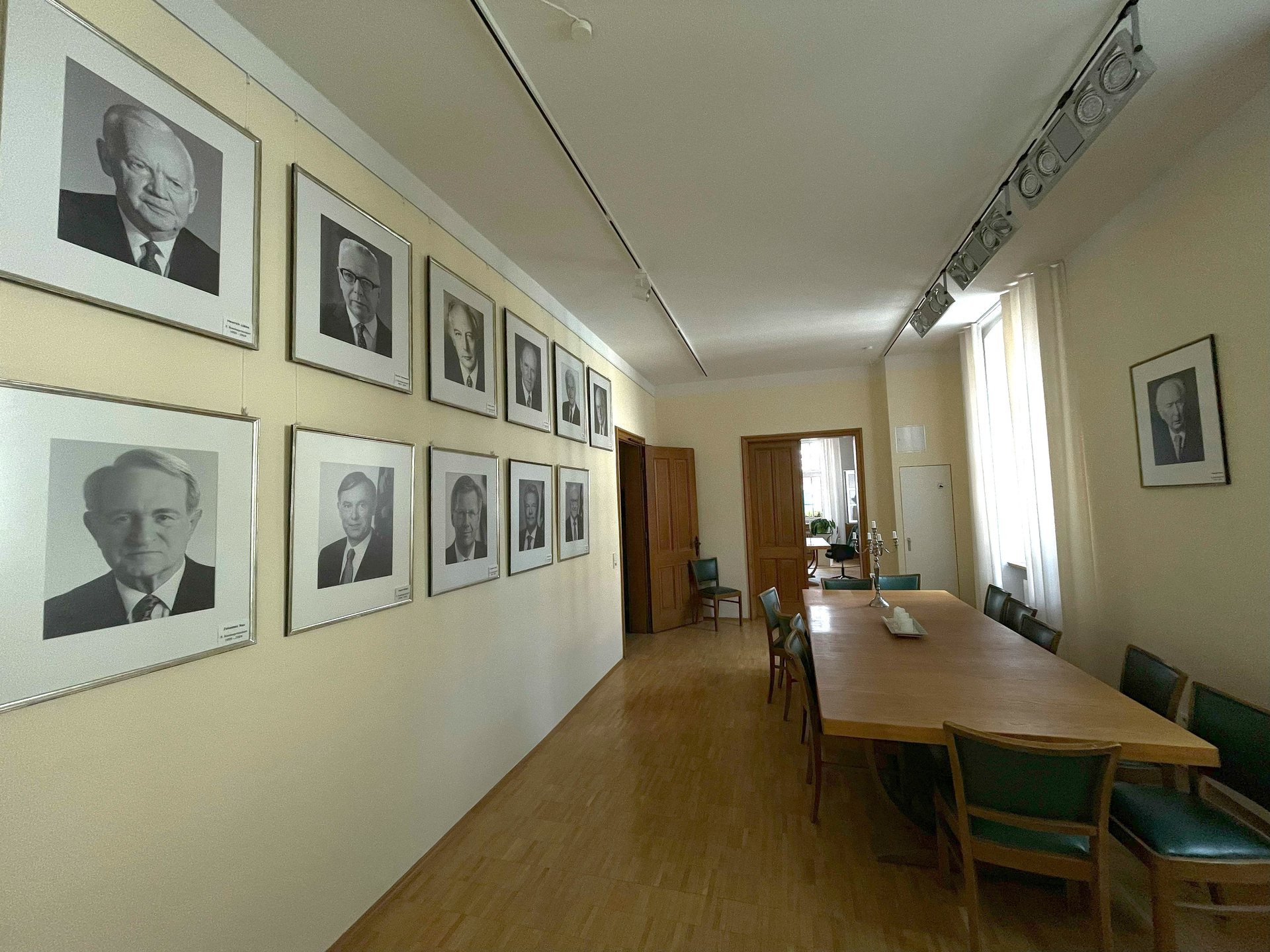 In den Räumen des Historischen Rathauses in Brackenheim findet sich ein besonderes Zimmer, das zu Ehren des ersten Bundespräsidenten Deutschlands eingerichtet wurde: Das Präsidentenzimmer. Als Geburtsort von Theodor Heuss, der am 31. Januar 1884 in Brackenheim geboren wurde, gedenkt die Stadt in verschiedenen Weisen dem großen Sohn. So wurde dieses Zimmer mit Bildern jedes Bundespräsidenten ausgestattet - in Gedenken an Theodor Heuss. Weiter steht hier ein Tisch aus dem Mobiliar des Kultministers von Württemberg - Baden und späteren Bundespräsidenten Theodor Heuss.
