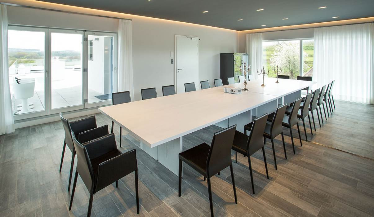 Ein Highlight bildet die Eber-Lounge - eine Dachterrasse mit herrlichem Ausblick, welche über den Schäfer-Saal betreten werden kann. Im Sommer kann der bezaubernde Außenbereich - umrahmt von Streuobstwiesen und Weinbergen - ebenfalls für Veranstaltungen genutzt werden.