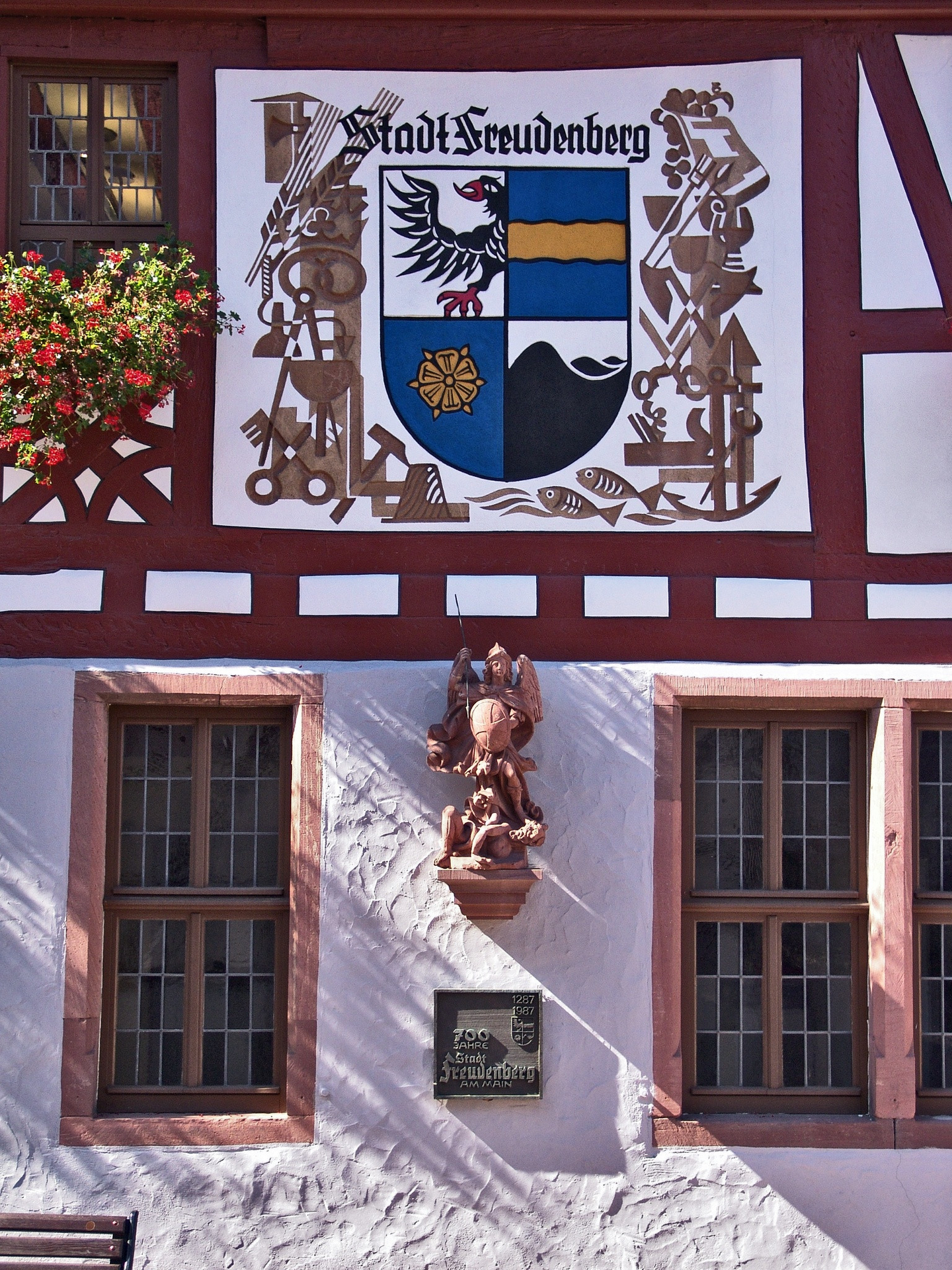 Nachdem der Bau der Burg zwischenzeitlich ins Stocken geraten war, baut Graf Asmus die Freudenburg als seinen Herrschersitz aus. 1499 wird unter seiner Herrschaft das Freudenberger Rathaus erbaut. Der imposante, vielgeschoßige Fachwerkbau wird Sitz der bürgerlichen Verwaltung, der Vertreter der Bürgerschaft. Die Bürger der Stadt Freudenberg sind vor allem Ackerbürger, Häcker, Schröter Steinhauer, Fischer und Schiffer. Das Rathaus war die zentrale Einrichtung der Stadt und hatte viele Funktionen. „Es war Verwaltungszentrum, Gerichtsgebäude, Markthalle und Bürgerhaus in einem. Eine Vielzahl von städtischen Ämtern und Positionen waren für die Regelung des städtischen Lebens zuständig und notwendig…“.