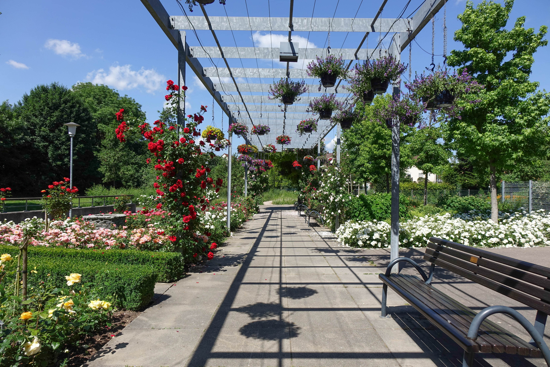 Direkt nebenan befindet sich der Rathauspark, der mit großem Kinderspielplatz einschließlich Wasserspielplatz am Katzentalbach kleine Entdecker begeistert.