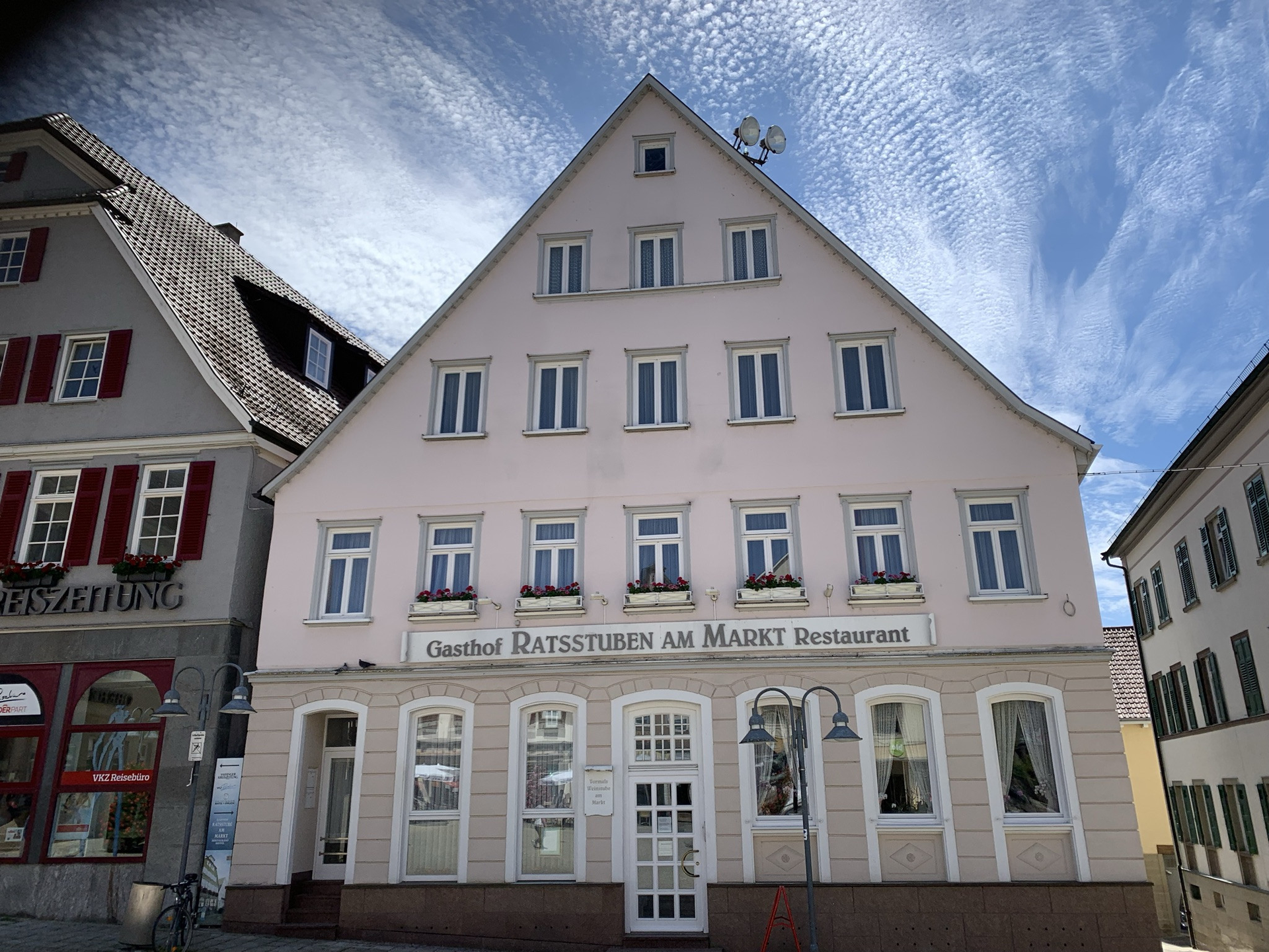 Das Restaurant Ratsstuben, direkt am historischen Marktplatz gelegen, weiß mit traditioneller schwäbischer Küche und regionalen Weinen seine Gäste zu verwöhnen.
