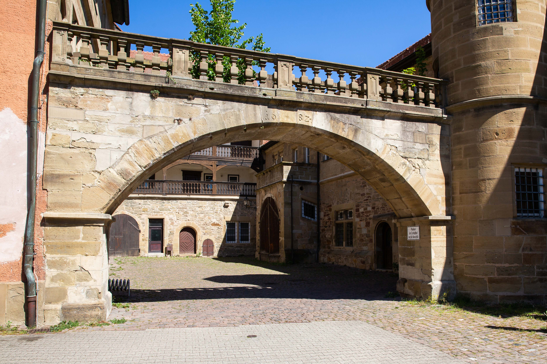 Renaissance-Schloss in der historischen Altstadt Brackenheims. Zweite Station des Stadtrundgangs "Auf den Spuren von Theodor Heuss", der am Theodor Heuss Museum beginnt.