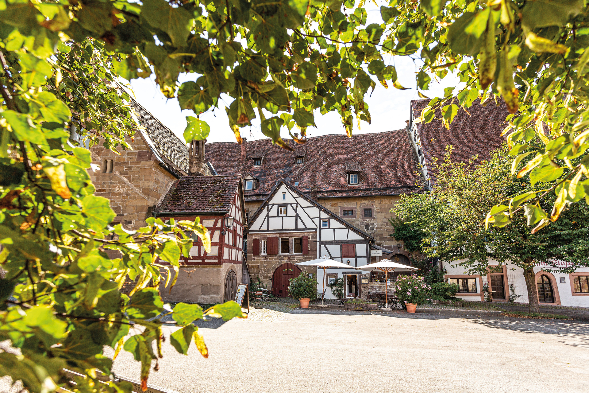Direkt nach dem Start führt der erste Anstieg hinauf nach Maulbronn. Das UNESCO-Welterbe Kloster Maulbronn liegt dabei fast beiläufig am Wegesrand und sorgt für einen kurzen kulturellen Auftakt, bevor die Route südlich in Richtung Roßwag abzweigt. Dort wartet eine schnelle, saubere Abfahrt, die direkt ins Enztal führt – und je nach Lust und Laune entweder zu einer Tasse Kaffee im Café mit Charme oder zu einer kühlen Team-Schorle bei der Lembergerland Kellerei.