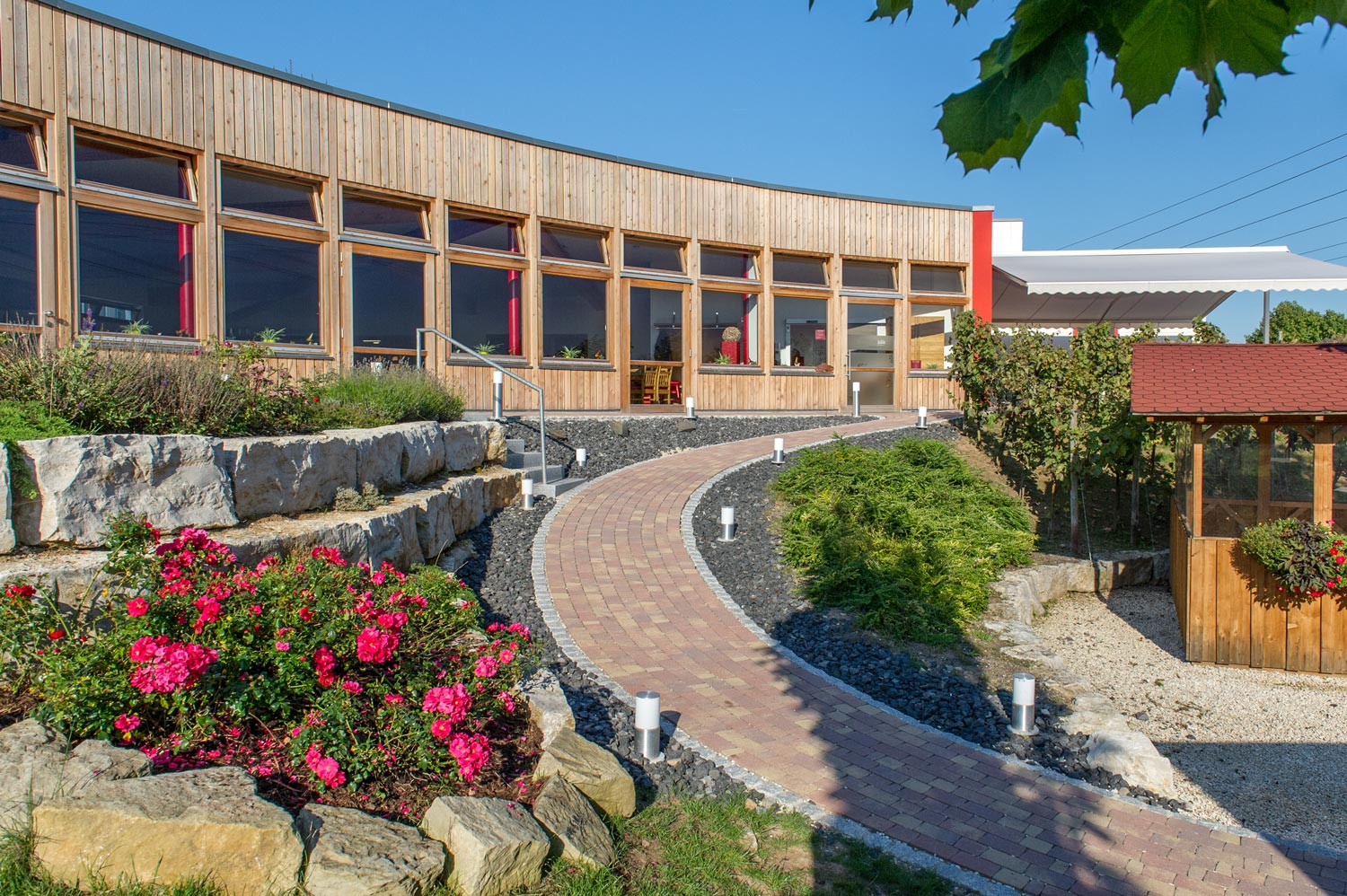Die Intention, auch in einer Gastronomie schwerbehinderten Menschen Teilhabe am Arbeitsleben in sozialversicherungspflichtigen Arbeitsverhältnissen zu bieten, war es, die den Neubau mit Unterstützung von Aktion Mensch, KVJS (Kommunalverband für Jugend und Soziales) und dem Diakonischen Werk Stuttgart in der Siemensstr. 19 im Gewerbegebiet Holderbüschle in Sachsenheim entstehen ließ!
