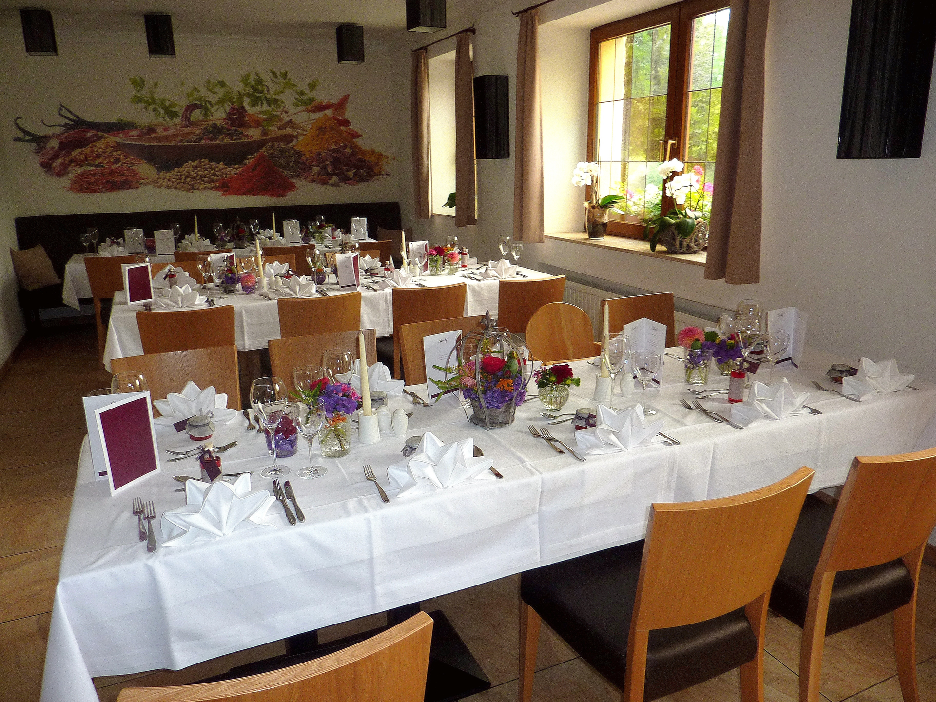 Für Feiern findest du im Innenbereich für 80 Personen und im Außenbereich für weitere 80 Personen Raum.