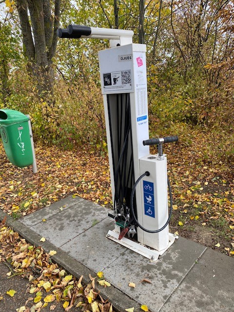 Der RadSERVICE-Punkt ist eine rund um die Uhr zugängliche Station und enthält Werkzeuge und eine Luftpumpe, womit kleinere Reparaturen schnell durchgeführt werden können.