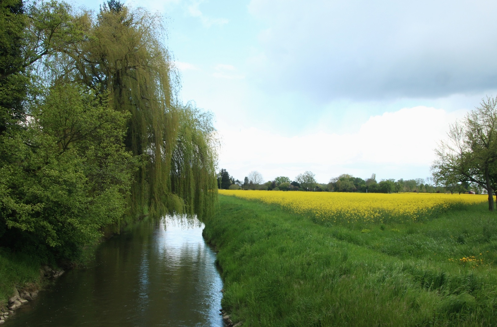 An der Landstraße (L598) überqueren wir jetzt die Kreuzung und folgen dem ausgeschilderten Radweg in Richtung Walldorf/Wiesloch, vorbei an der Wiese der Weißstörche mit ihren Nisttürmen. Wir befinden uns an dieser Stelle nicht sehr weit von der Lutherischen Brücke oder auch "Die Luddarisch Brick". Im Mundart-Krimi von Arnim Töpel wird diese Brücke zum "Tatort".