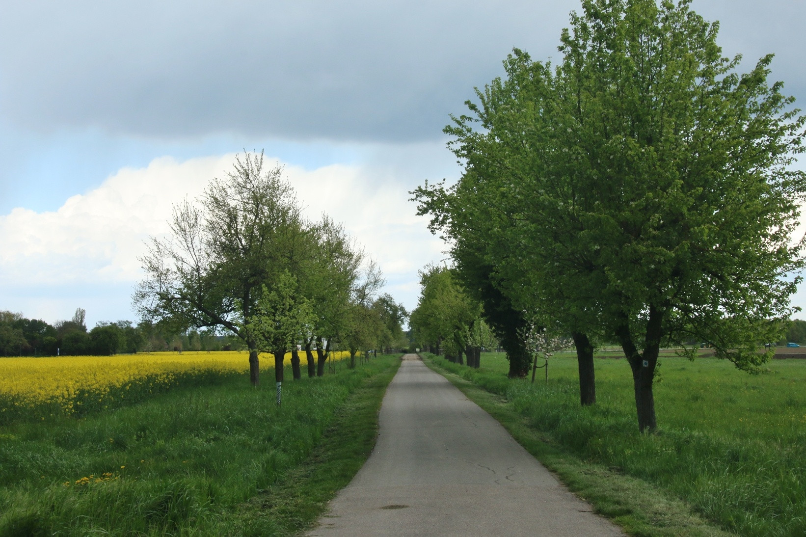 Ohne den Abstecher nach Walldorf führt die Strecke am Fluggelände vorbei, durch eine schöne Feld- und Wiesenlandschaft. Auf dem letzten Teilstück unserer Tour befinden wir uns auf dem Fernradweg Odenwald-Madonnen-Weg, der uns an den Aussiedlerhöfen vorbei, geradewegs wieder an unseren Startpunkt, den Bahnhof Wiesloch/Walldorf führt.
