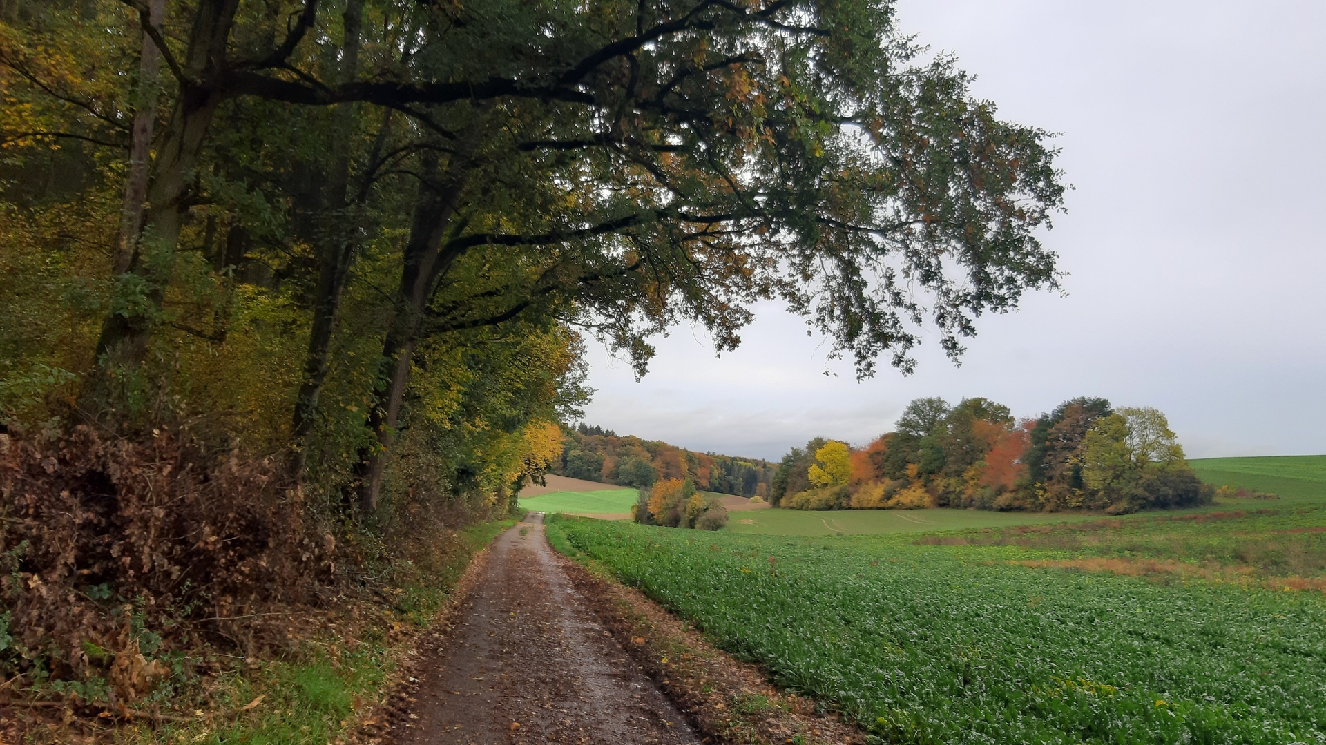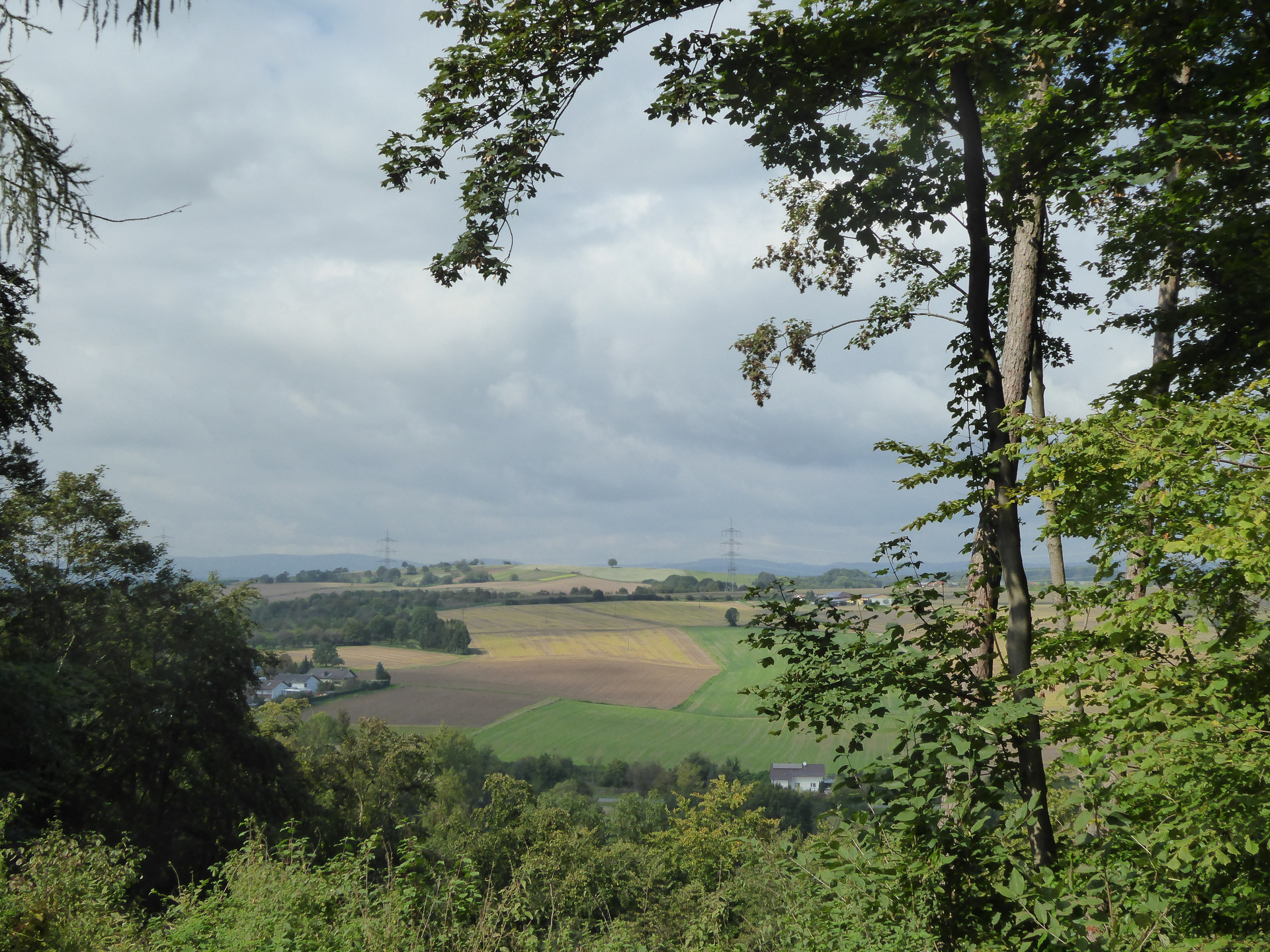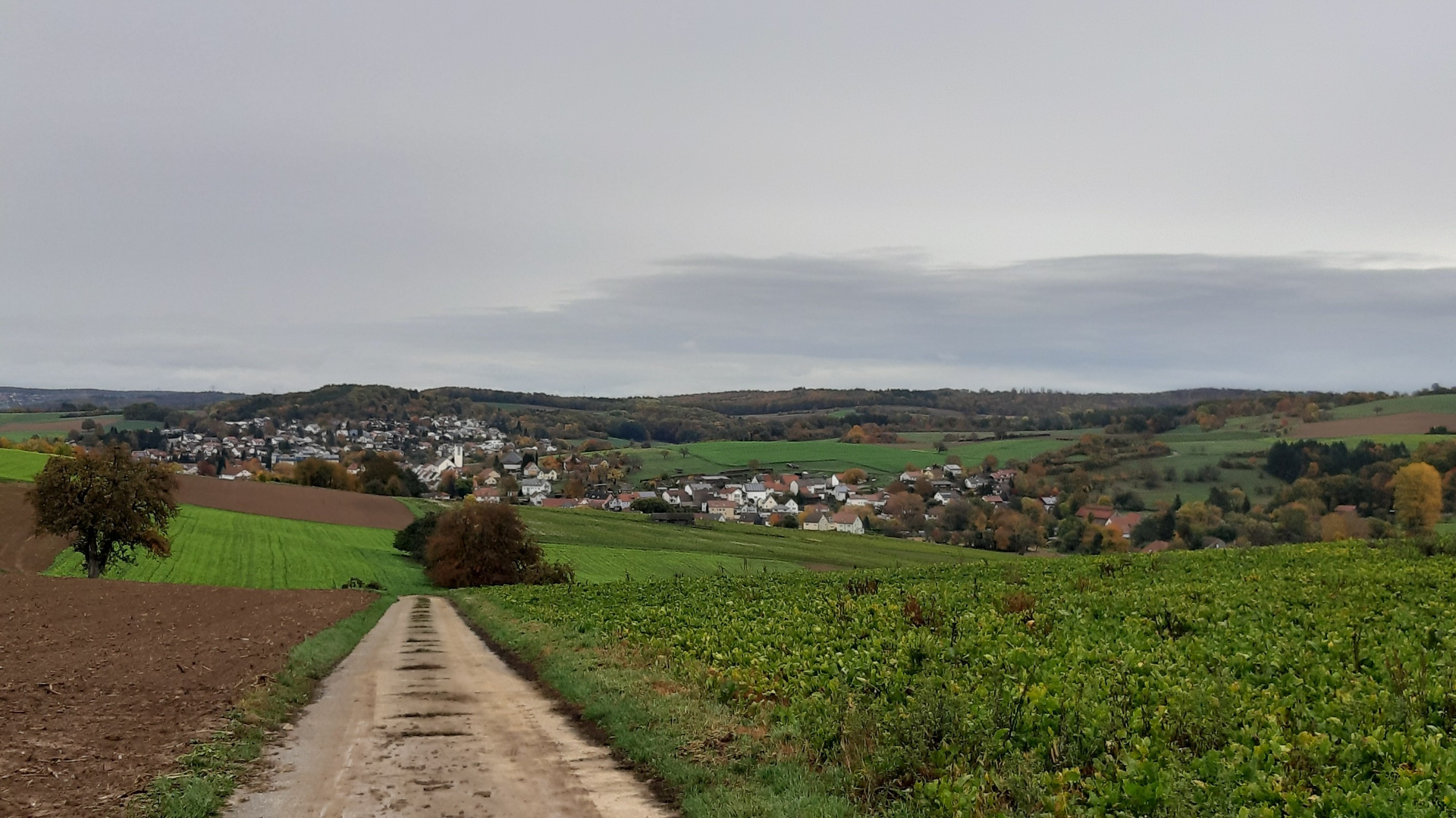Die Wanderstreckenführung W1/NB1 führt aus dem Wald in Richtung Süden. Landwirtschaftlichen Wege führen uns über die Hügellandschaft wieder in Richtung Neckarbischofsheim zum Schlosspark.