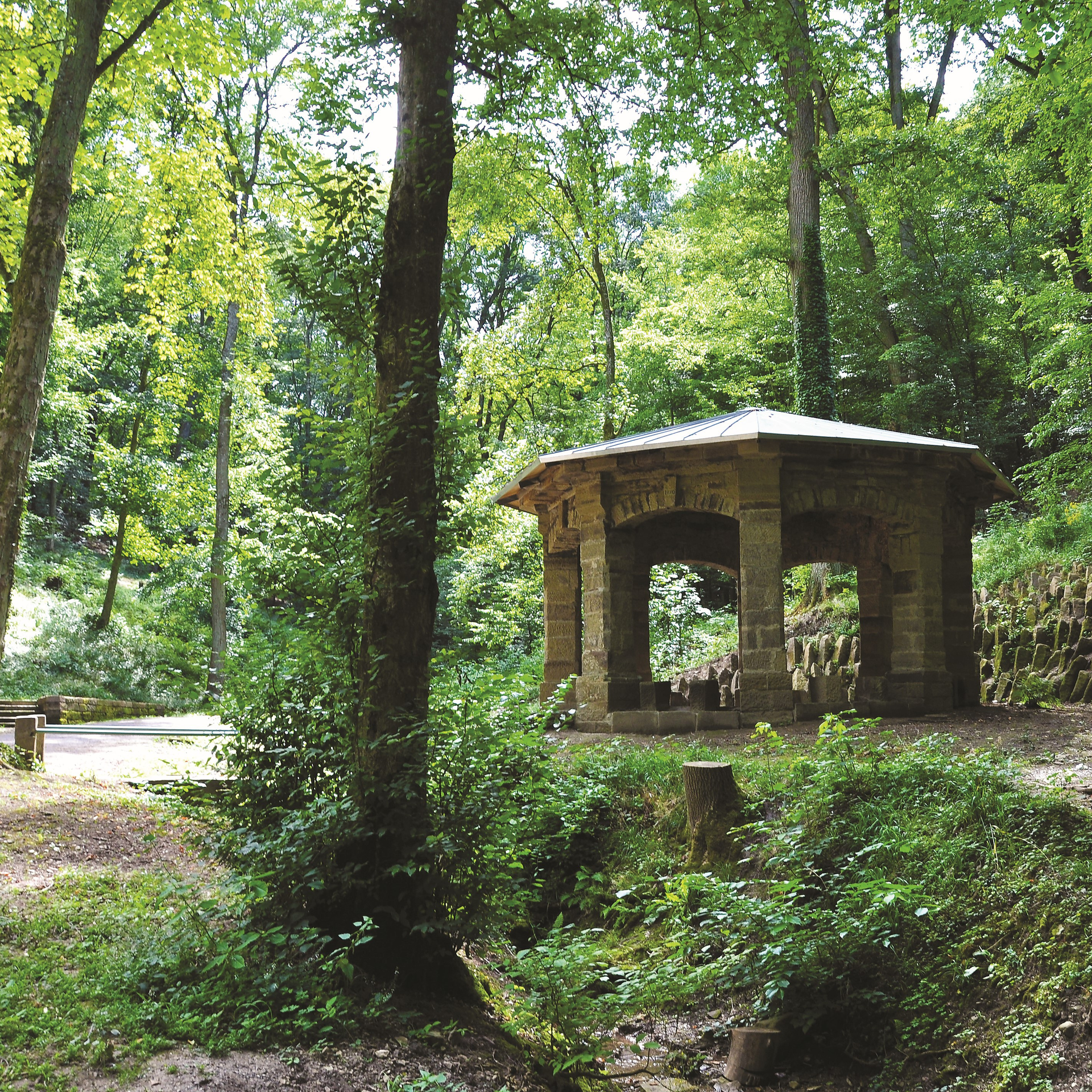 Der Schweinsbergturm bietet einen herrlichen Ausblick. Von dort geht es über den Köpferweg hinunter zur Köpferanlage. Hier werden Geheimnisse über das Köpfertal, den Bach samt Klause, Brunnen und Musikpavillon gelüftet.