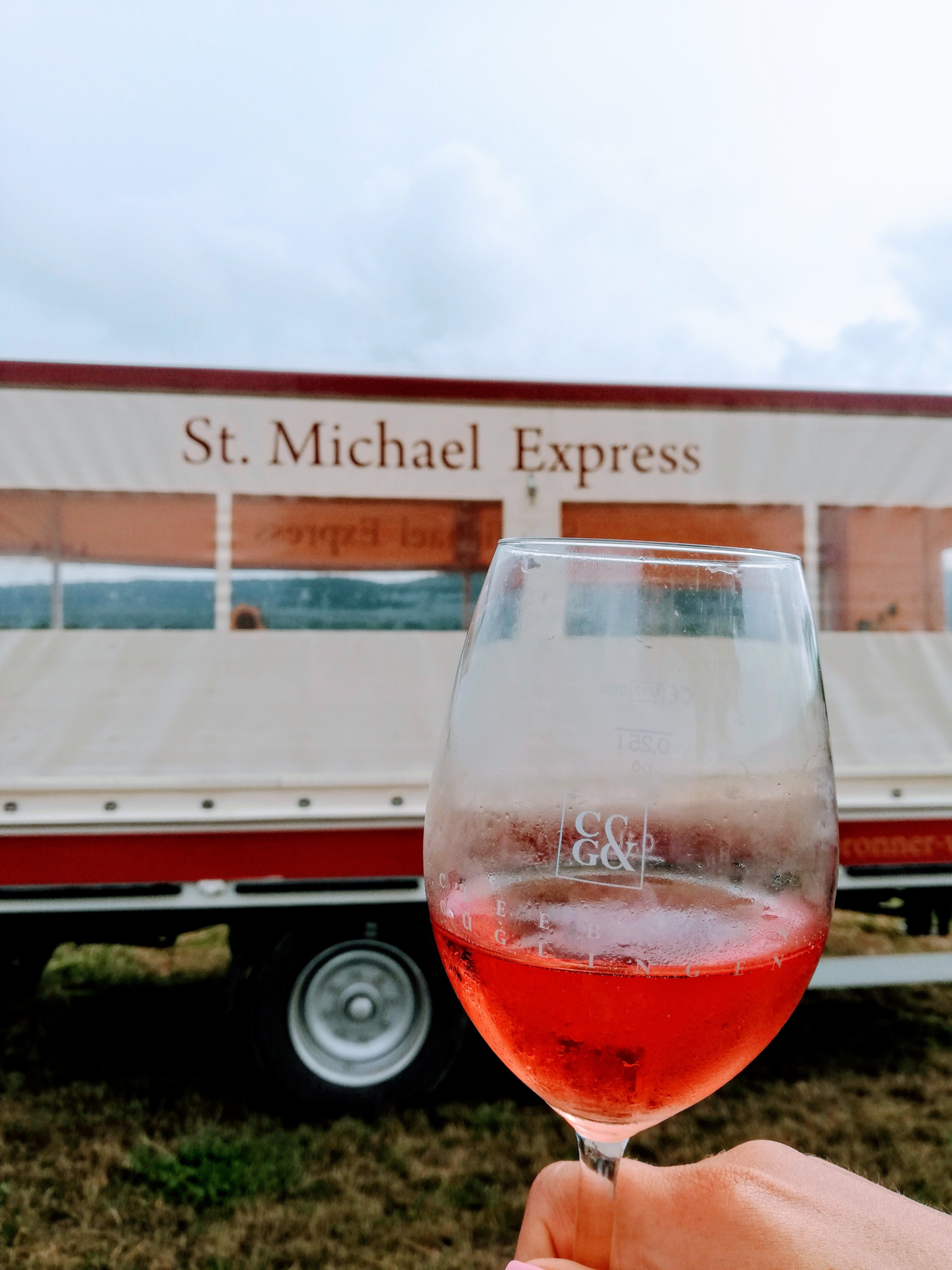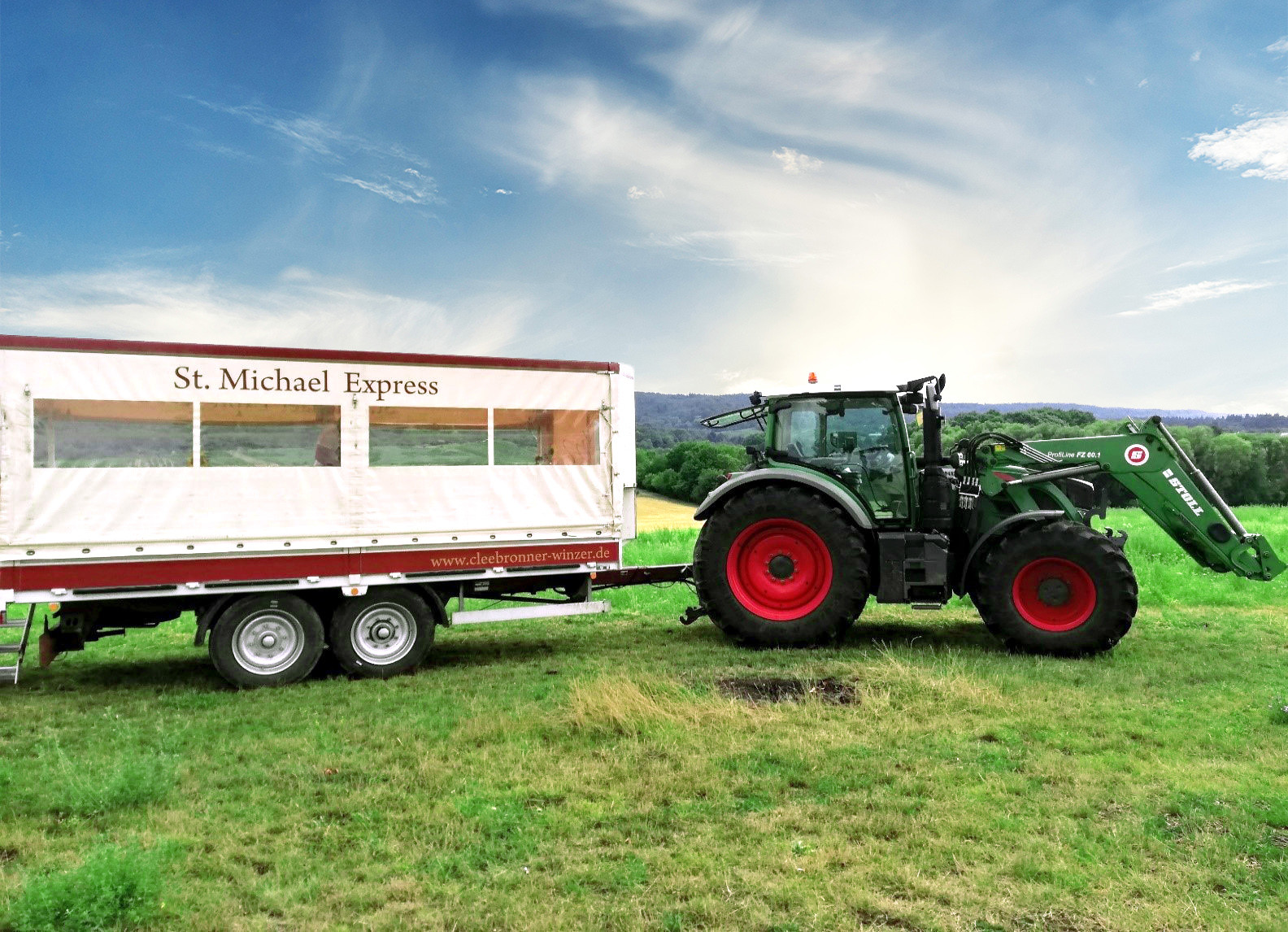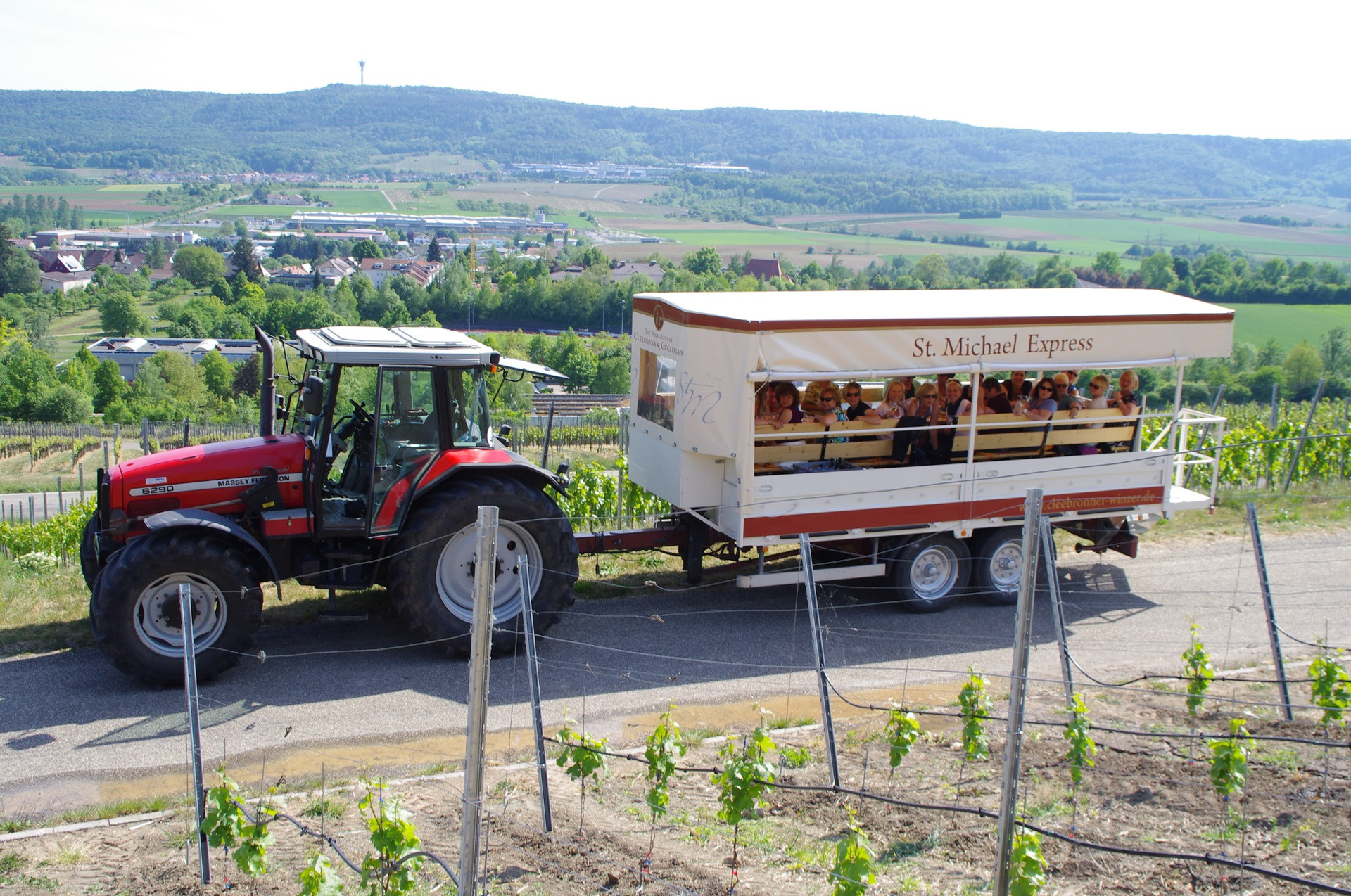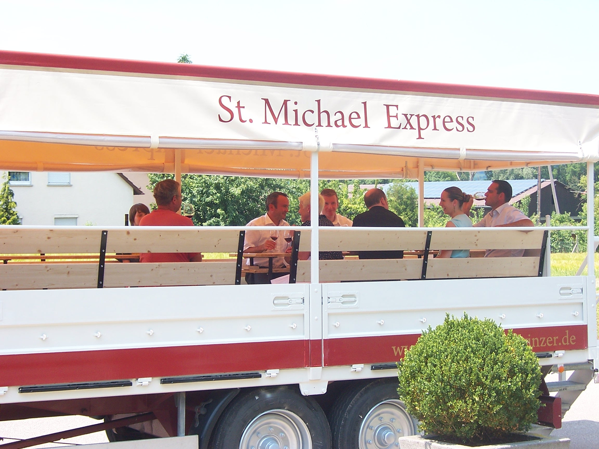 Chic und bequem geht es mit dem Sankt M Express, dem rollenden Weinpavillon, durch die Rebzeilen am Michaelsberg. Ein geselliges Erlebnis zum Wunschtermin für Gruppen zwischen 15 und 20 Personen. Für Kleingruppen oder Einzelpersonen werden aber auch offene Termine angeboten.