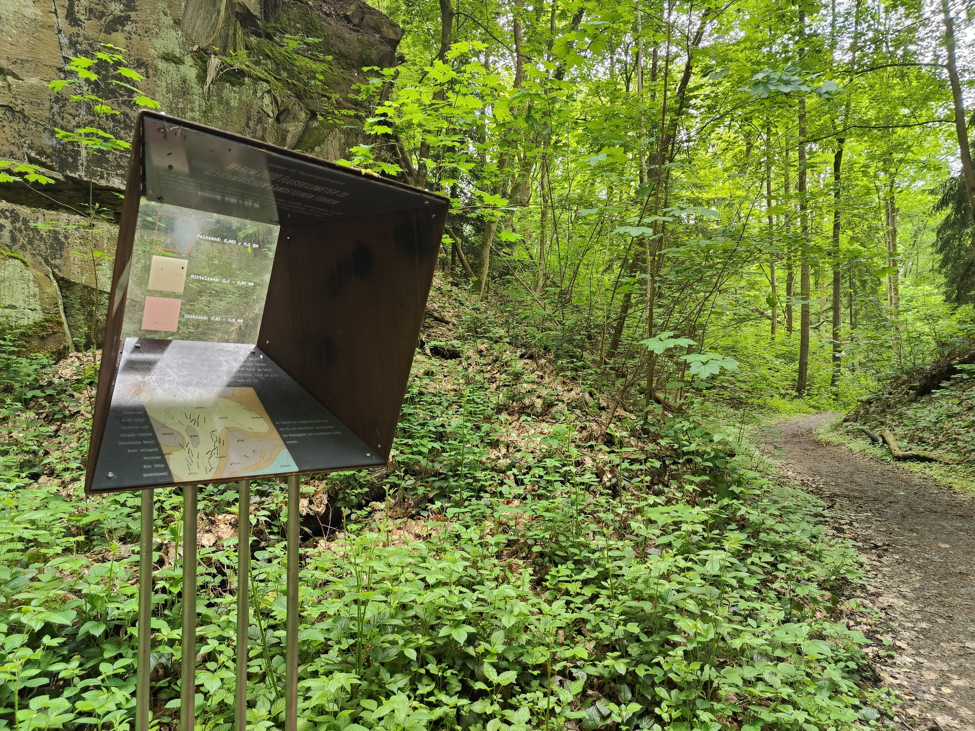 Besonders an heißen Sommertagen ist ein Spaziergang durch den ehemaligen Schilfsandsteinbruch ein echter Insidertipp. Immer schattig und auch ein wenig feucht, lässt es sich hier durchatmen.