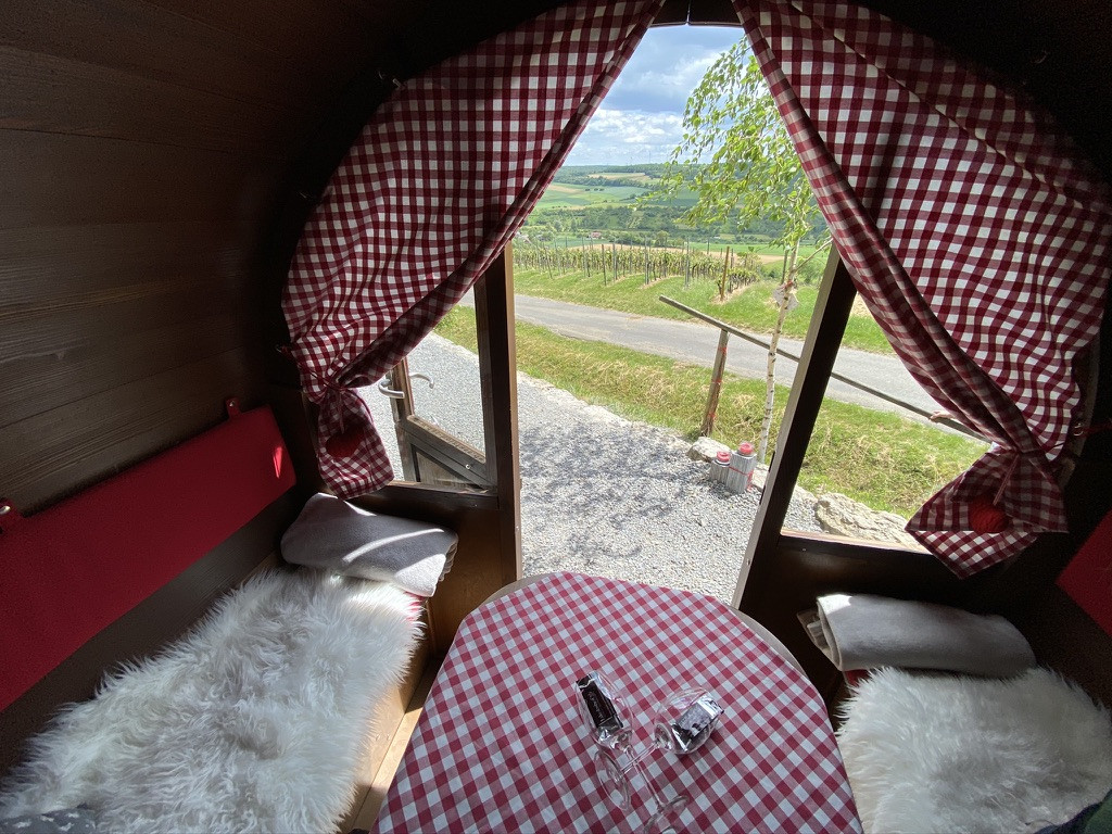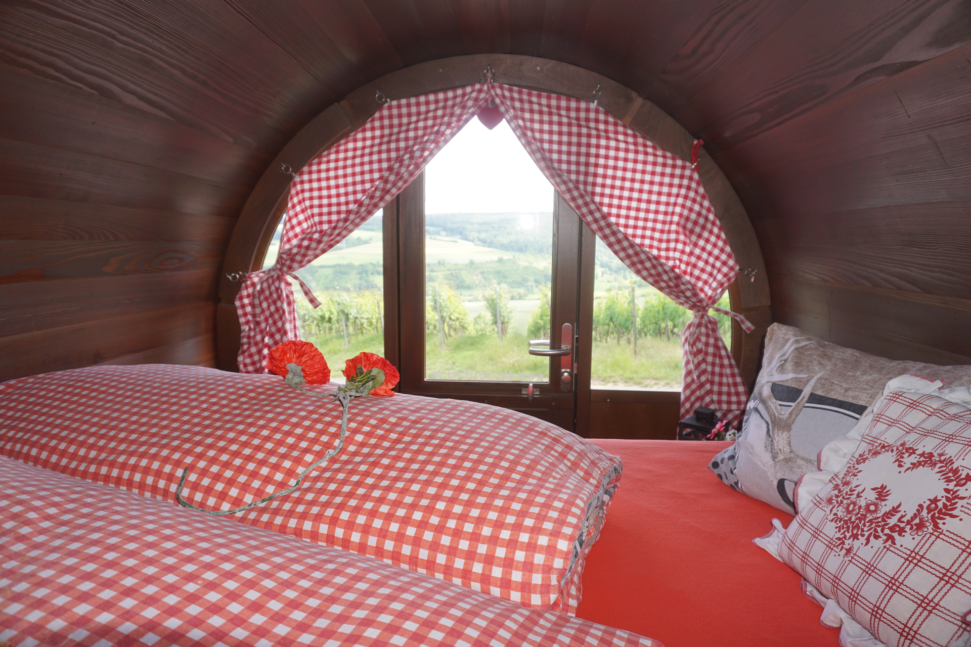Idyllische Weinbergstille schmiegt sich in den fantastischen Aus- und Weitblick des traumhaften Taubertals. Zwischen den Reben, am Roggenberg hoch über Markelsheim lässt es sich aushalten – und schlafen, ziemlich außergewöhnlich noch dazu.