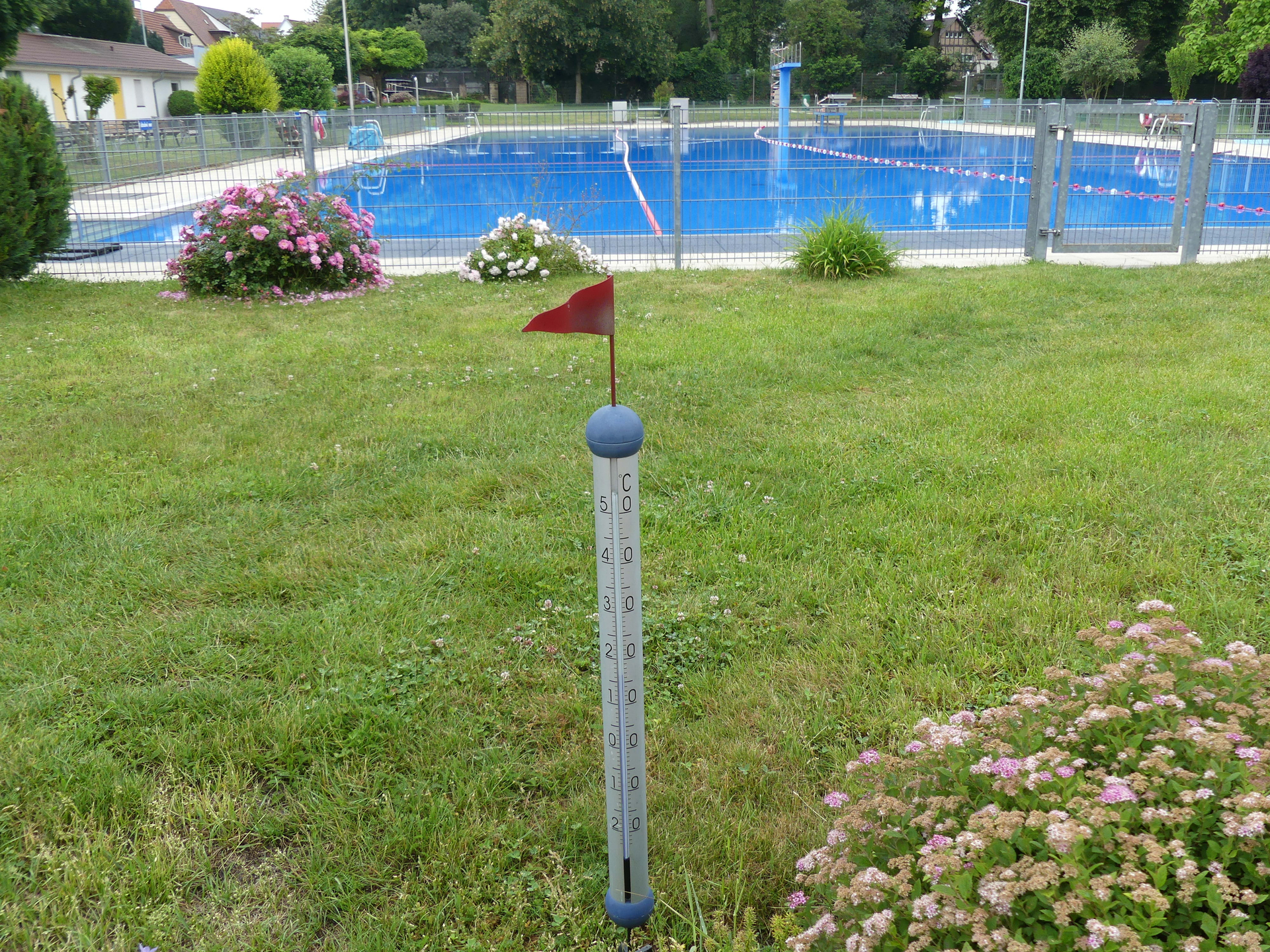 Nach einem ausgiebigen Sonnenbad bietet das 50 m lange Sportbecken mit seinem 3-Meter-Sprungturm eine willkommene Abkühlung. An kühleren Tagen beträgt die Wassertemperatur mindestens 23° C. Kinderbecken: Kinderplanschbecken (28° C) aus Edelstahl mit fast 100 m² Wasserfläche, durch Wasserrutschen in zwei Einzelbreiche aufgeteilt. Das obere Becken hat eine konstante Wassertiefe von 40 cm während das untere Beachbecken bei 10 cm Wassertiefe beginnt und sanft auf 40 cm abfällt. Der vom Wasserfallbecken und dem Wassertor separat gespeiste Schiffchenkanal bietet vielfältige Spielmöglichkeiten für die kleinen Wasserratten: Ein Wasserfall, Wasserspeier Spritzdüsen und auch unser mehr als 50 Jahre alter Wasserfrosch. Im Bereich der Liegewiese nahe des Beckens finden sich diverse Spielgeräte.Springtürme: 1m-Sprungbrett und 3 m-Sprungbrett.