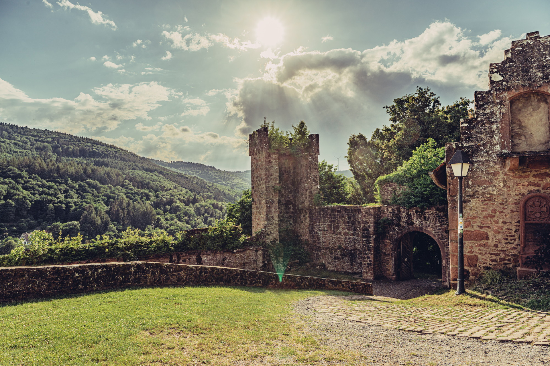 Malerisch schmiegt sich die historische Altstadt an den Hang, geschützt von den mächtigen Burgmauern und umgeben von den Hügeln des Odenwaldes. Der Charme längst vergangener Zeiten ist hier immer noch zu spüren. Die Geschichte der Burg lässt sich an den Burgmauern ablesen.