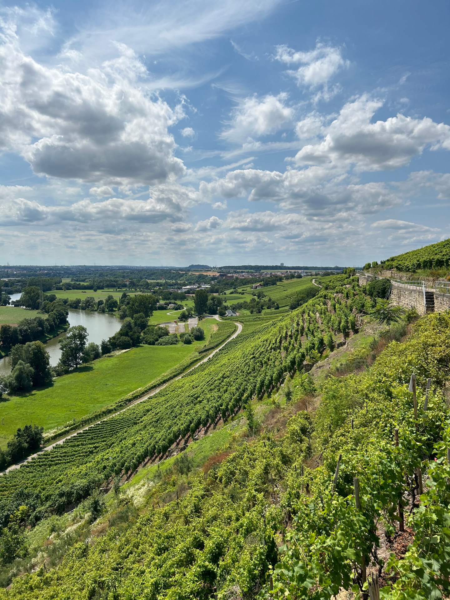 Wir laden Dich ein, die spektakulären Terrassenlagen mit dem darüber aufragenden Kleiningersheimer Schloss auf einem komfortablen, barrierearmen Rundweg durch Streuobstwiesen und Neckaraue kennenzulernen. Genieße die herrlichen Ausblicke über die Weinterrassen und das Neckartal. Zwei Aussichtsplätze mit Blick auf die Steillagen und über das Neckartal bieten die Möglichkeit zur Rast und zum Genießen.