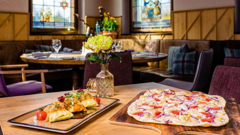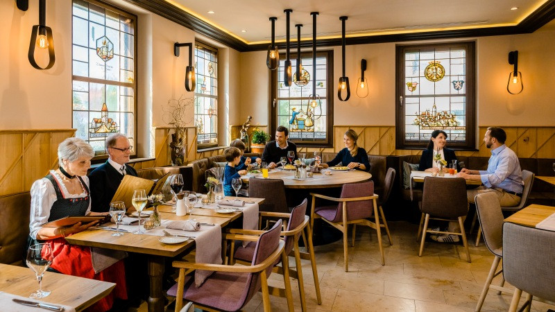 Das Team vom Hotel neuen Tor verwöhnt seine Gäste in der rustikalen Schlotzerstube mit schwäbischen Lieblingsgerichten in Wohlfühlatmosphäre.